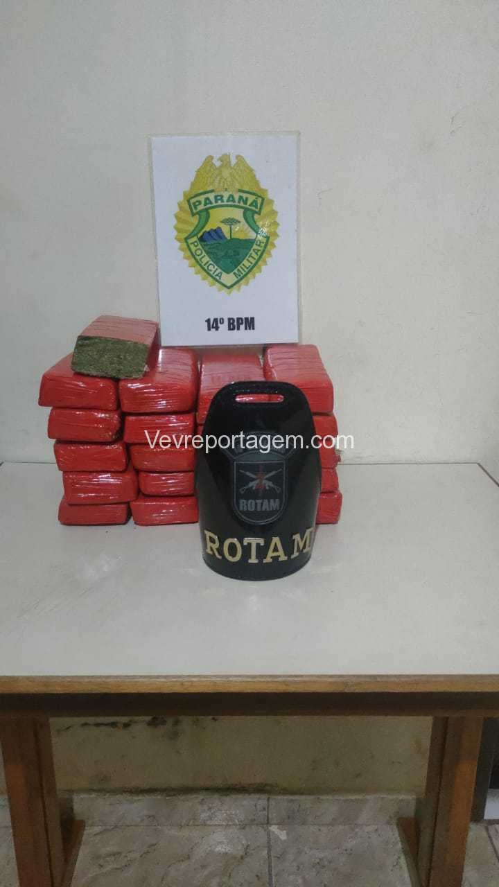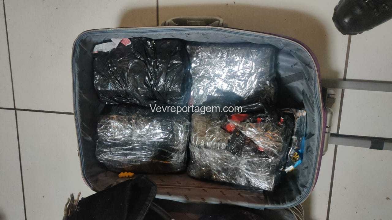 Na delegacia a droga foi pesada e totalizou 13, 879 kg dividida em 21 tabletes.
