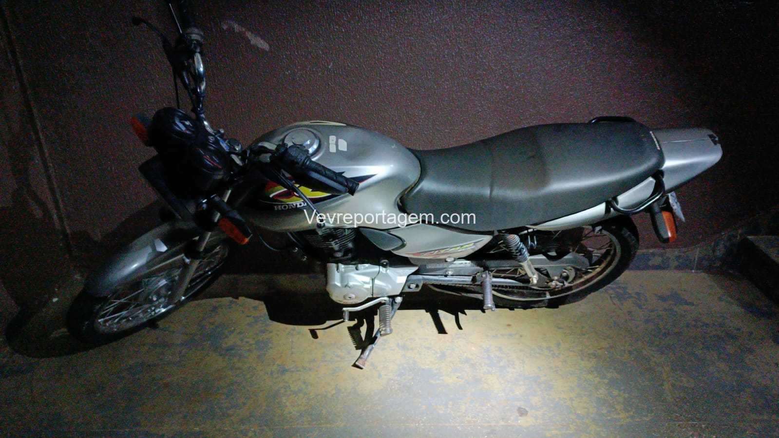 No local, os policiais constataram a ocorrência, a motocicleta foi localidade e checada a placa da motocicleta deu queixa de furto. Ninguém responsável pela Motocicleta foi localizado.