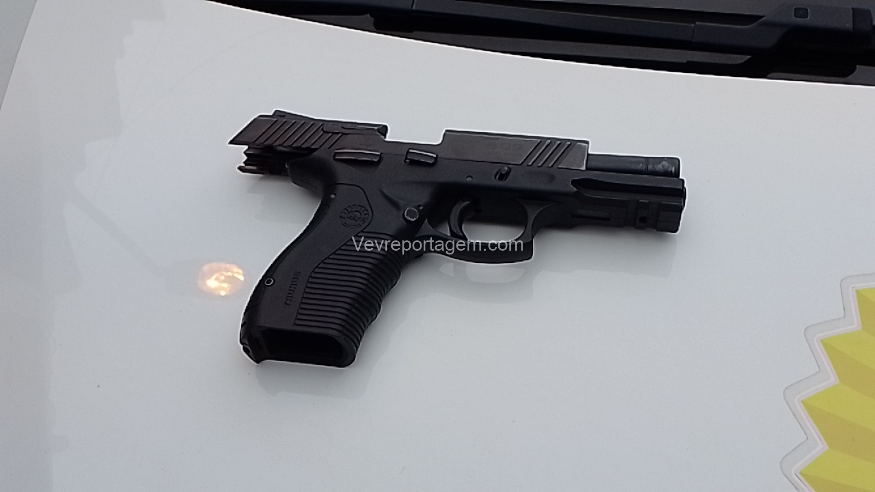 Os dois indivíduos, juntamente com a arma de fogo, foram encaminhados para a Delegacia da 6ª SDP. O terceiro suspeito, que dirigia o veículo, conseguiu fugir após a colisão, abandonando os comparsas no local.