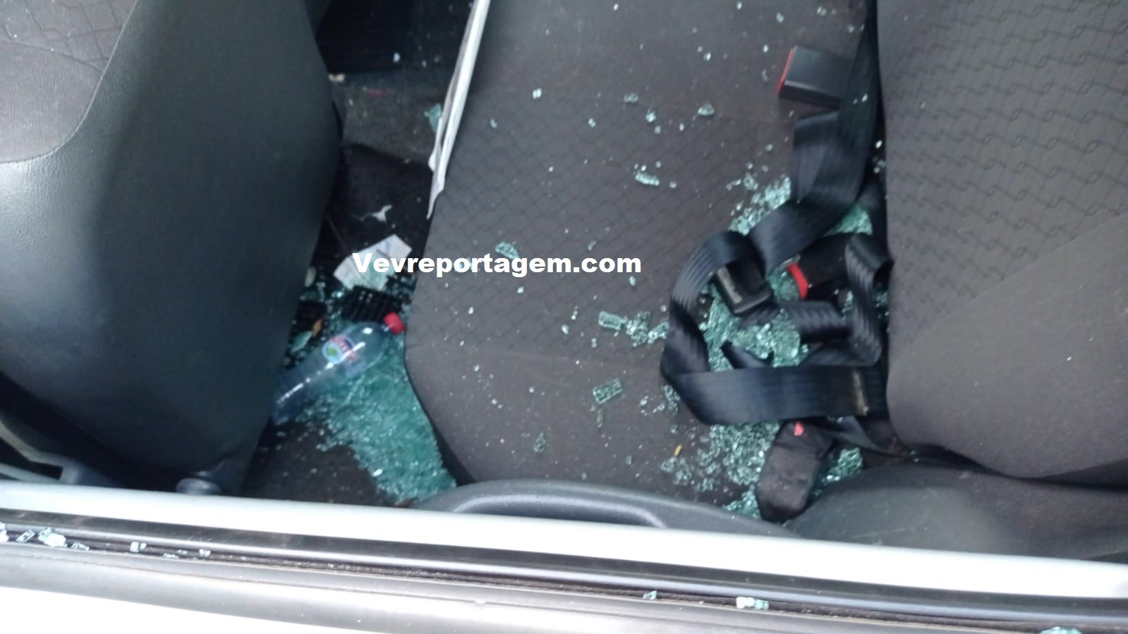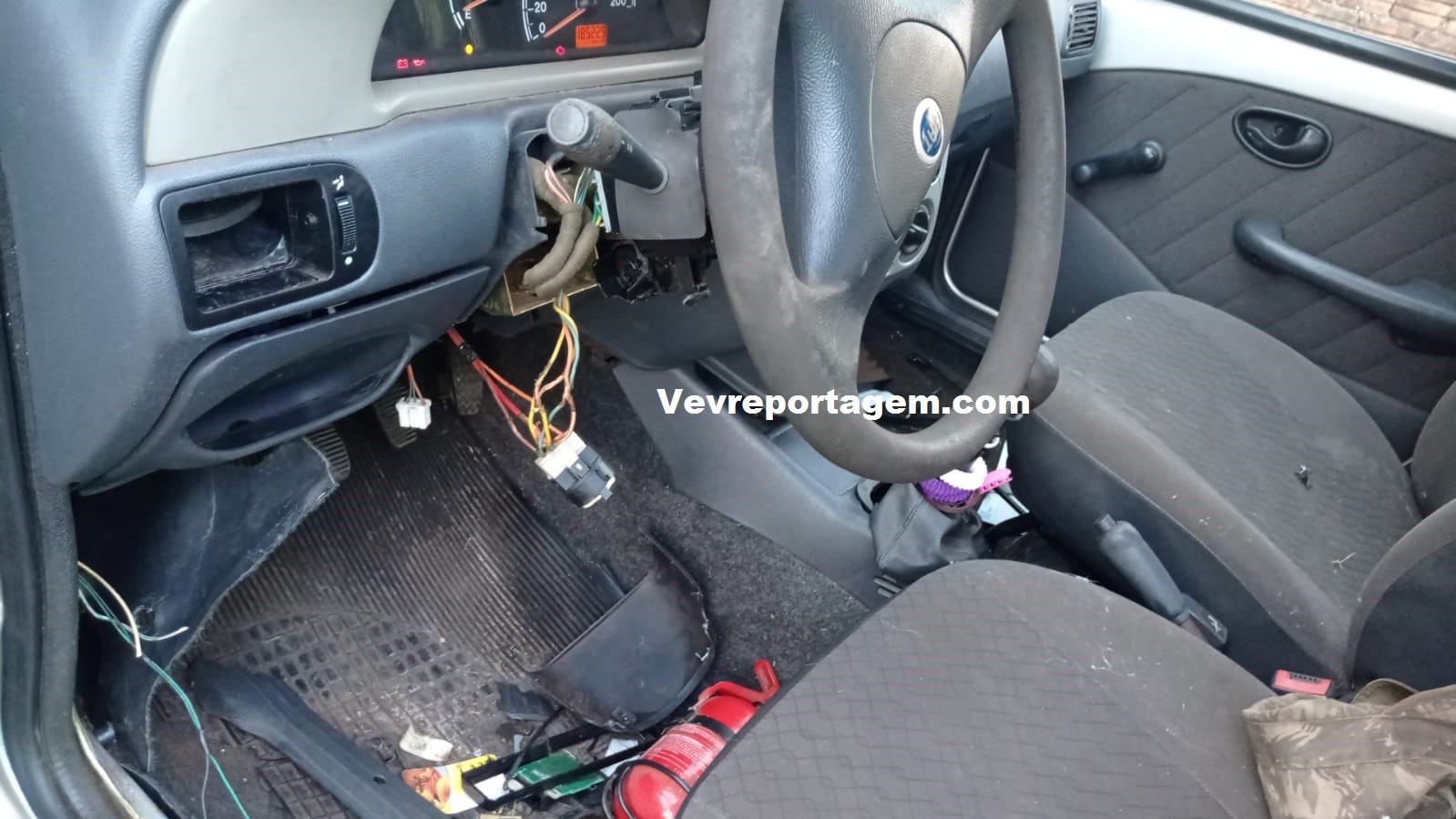 Um dos vidros do veiculo estava quebrado e os elementos fizeram ligação direita destruído quase todo o painel do veiculo.