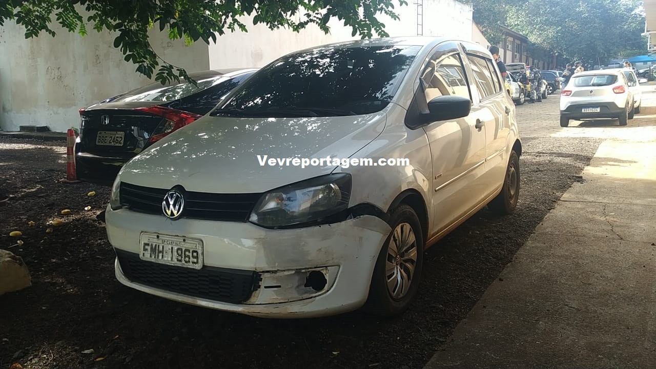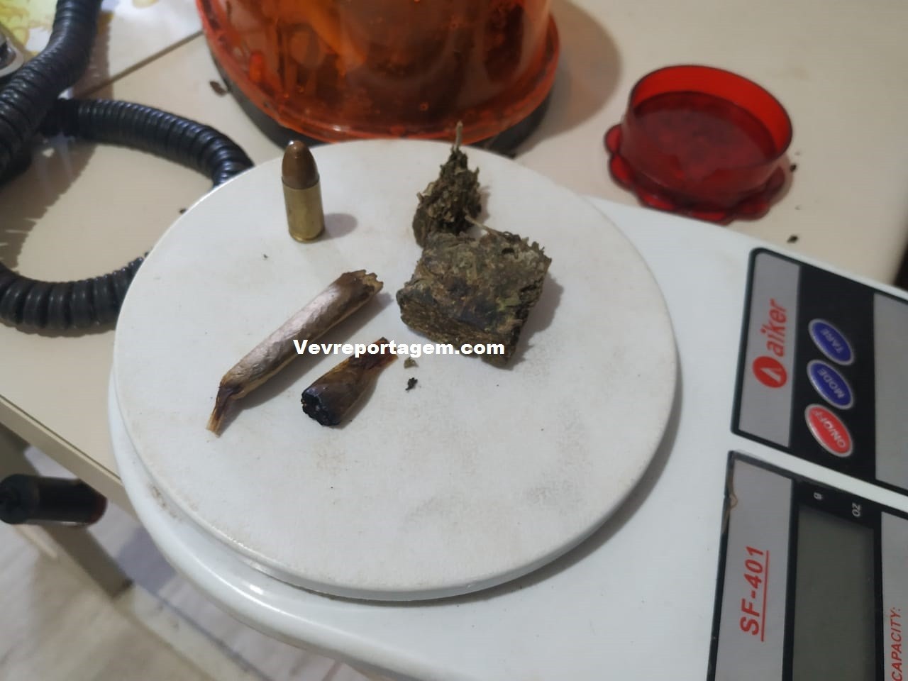 As equipes policial entraram na residencia, onde havia uma mulher com seus filhos menores de idade, realizado a vistoria na residencia onde foi localizado varias placas de veículos, foi todas checadas e todas constavam alerta de furto/roubo, também foi encontrado uma pequena porção de maconha, um cigarro de maconha e um giro flex. No veiculo Fox foi encontrado uma munição de pistola 9mm da marca Luger.