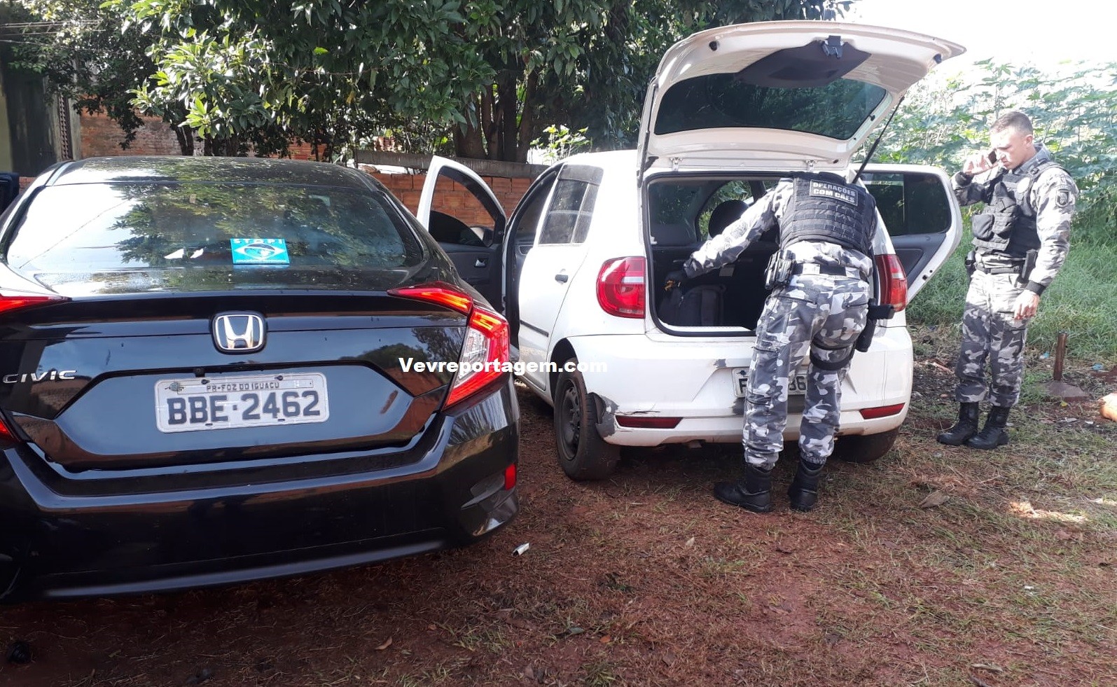 A equipe deslocou no local da denuncia e observaram que na residencia não tinha portão e havia o veiculo Honda Civic e um veiculo VW/ Fox de cor branca, sendo então acionado o apoio dos policiais do CHOQUE, para realizarem a vistoria na residencia.