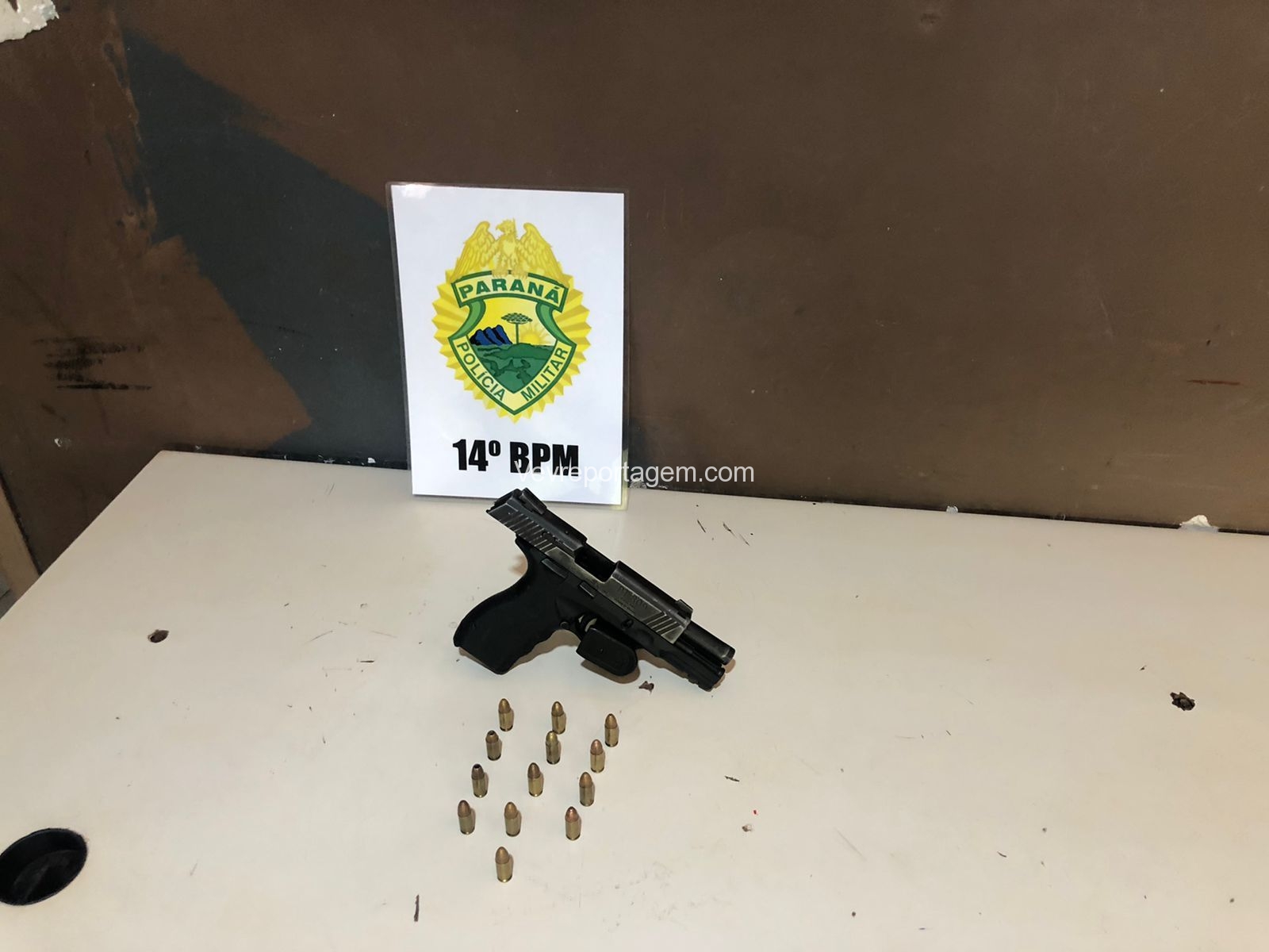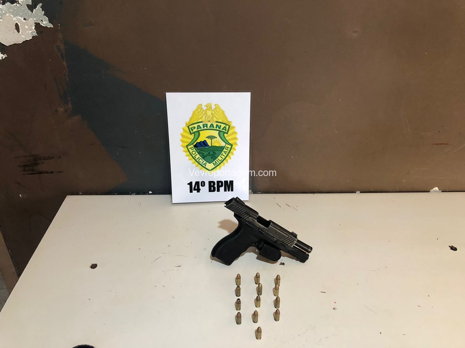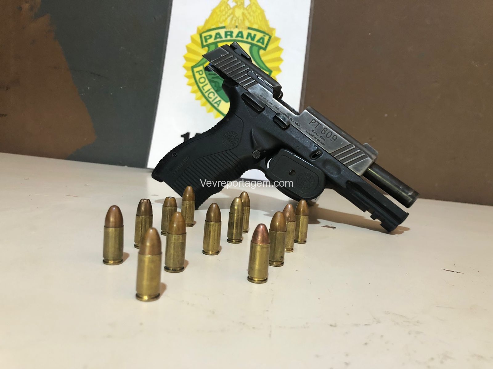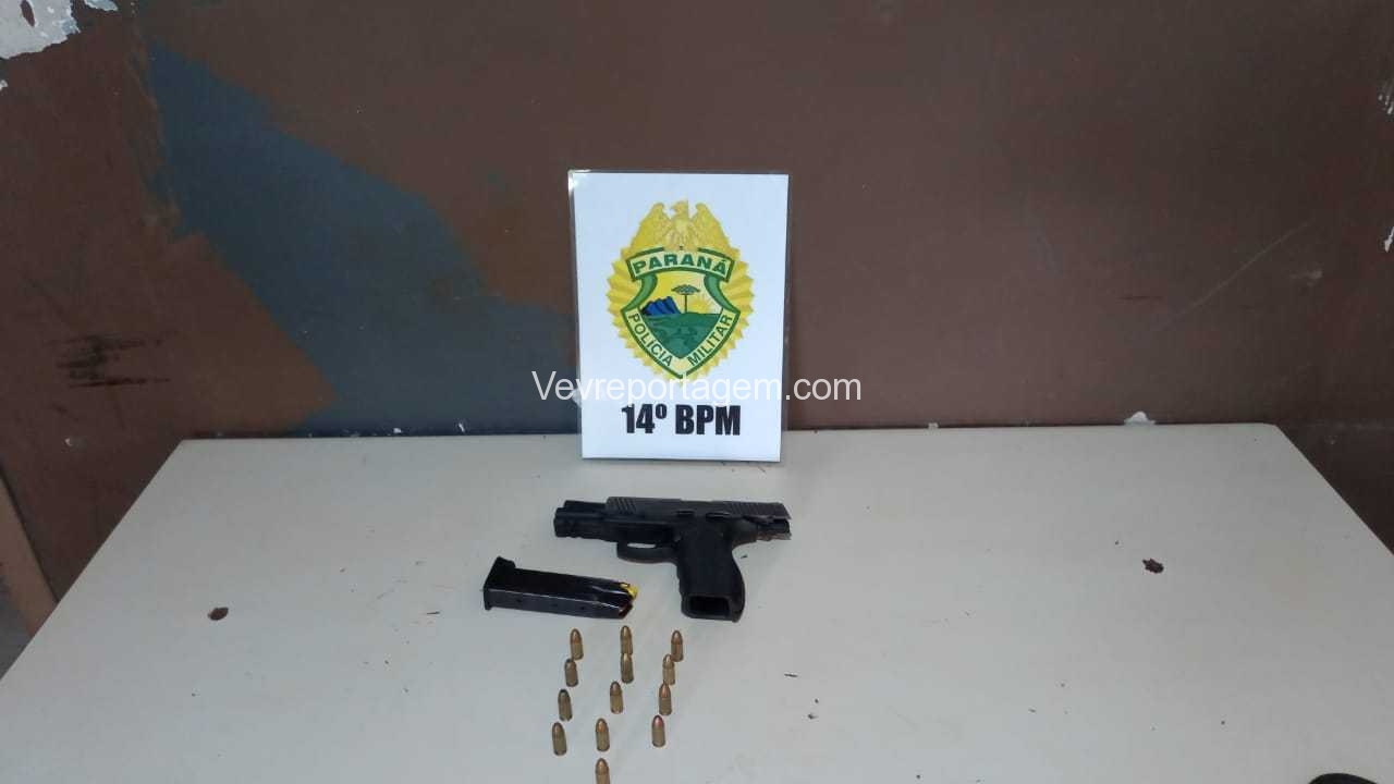 Buscas foram feitas no local, porém sem êxito o indivíduo não foi localizado, porém os policiais observaram que durante a fuga o homem dispensou um objeto então feito uma varredura no local e localizaram uma pistola 9mm com 13 munições intactas.