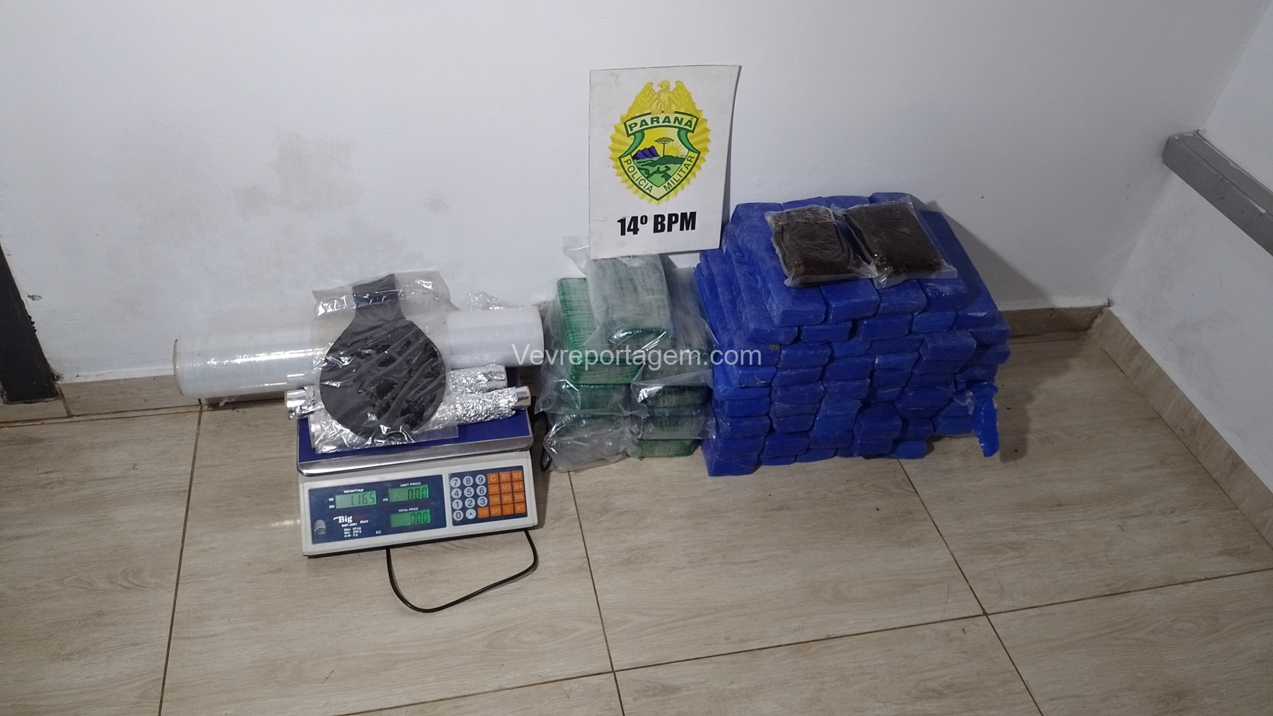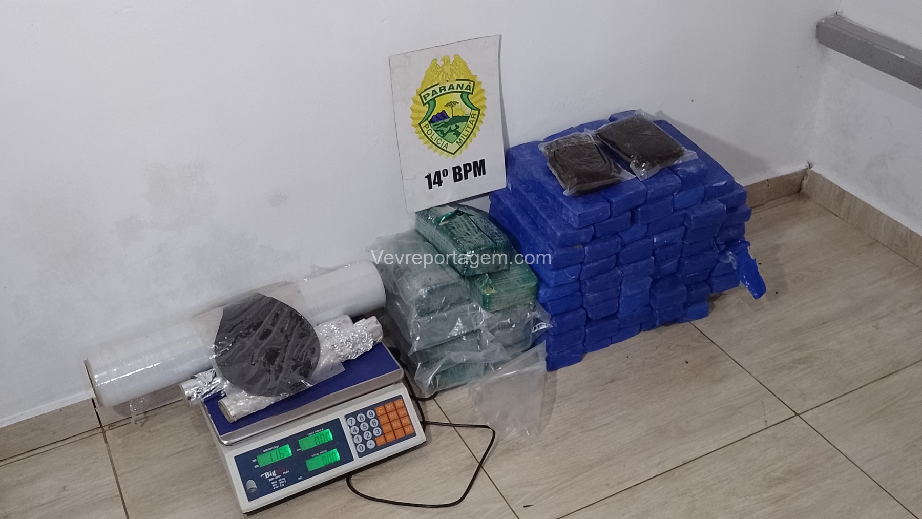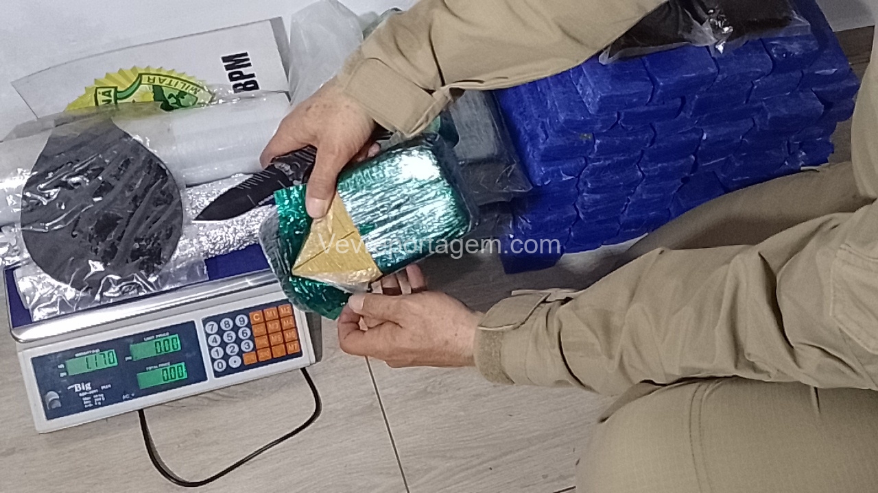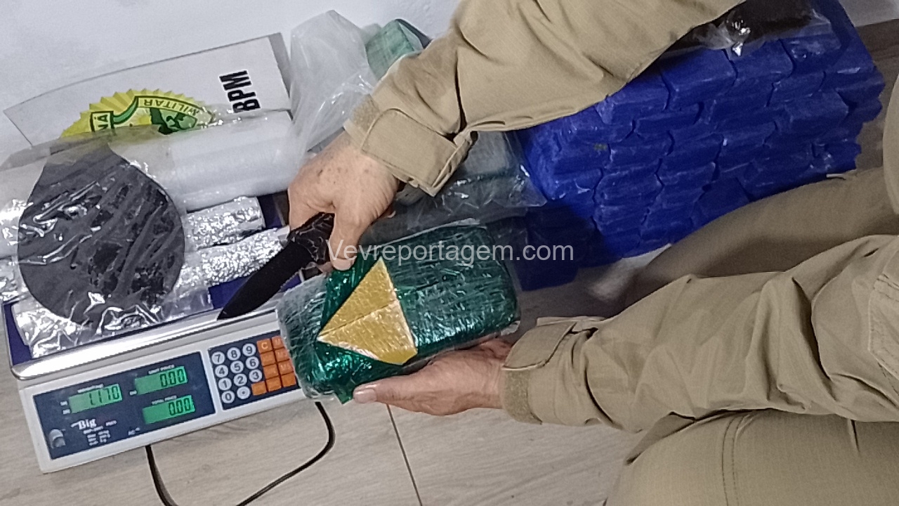 Ao chegarem ao local, os militares constataram que o portão da casa estava aberto. Durante a averiguação, foram localizados 10 quilos de crack, 30 quilos de maconha e 1 quilo de haxixe.