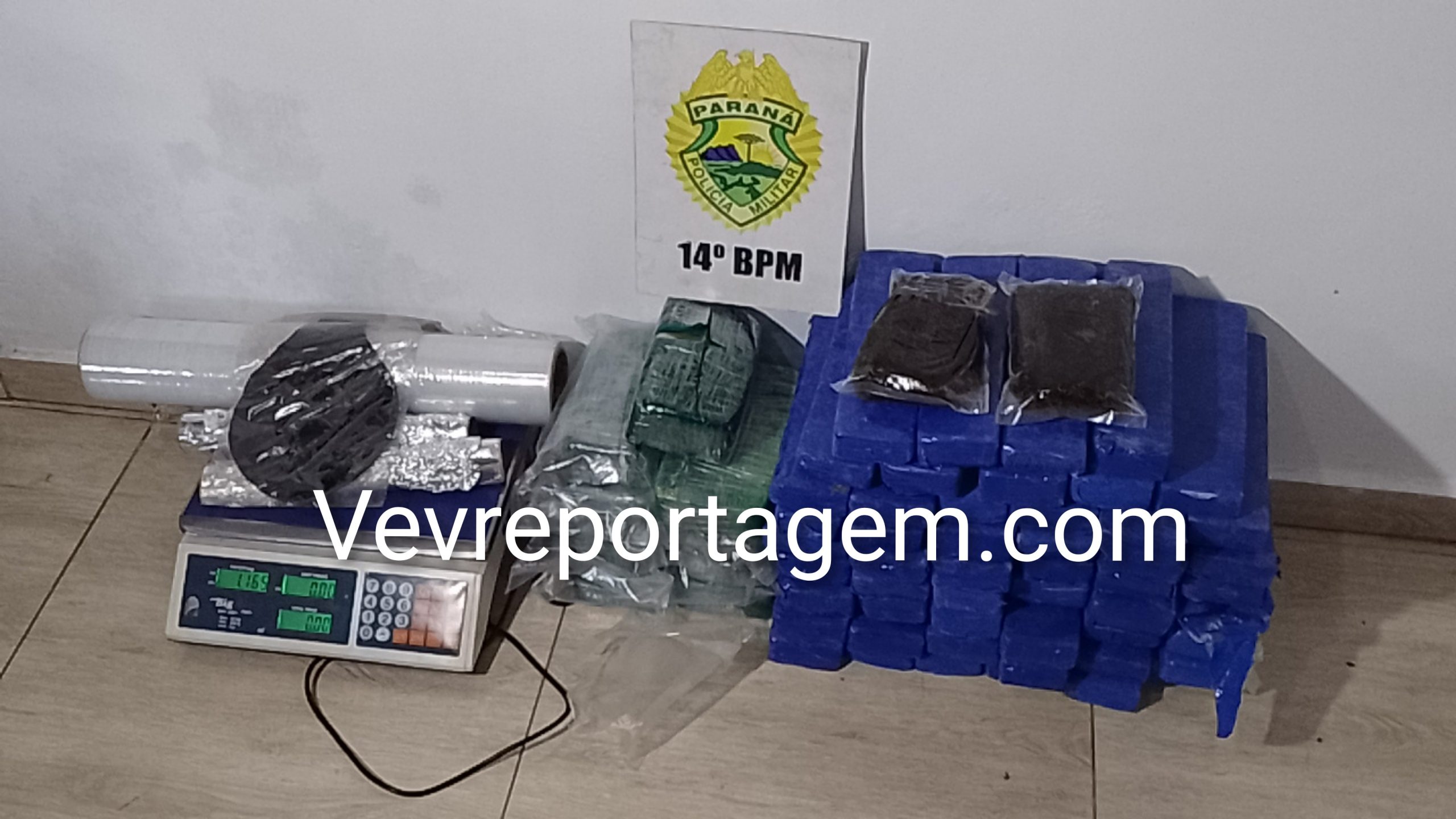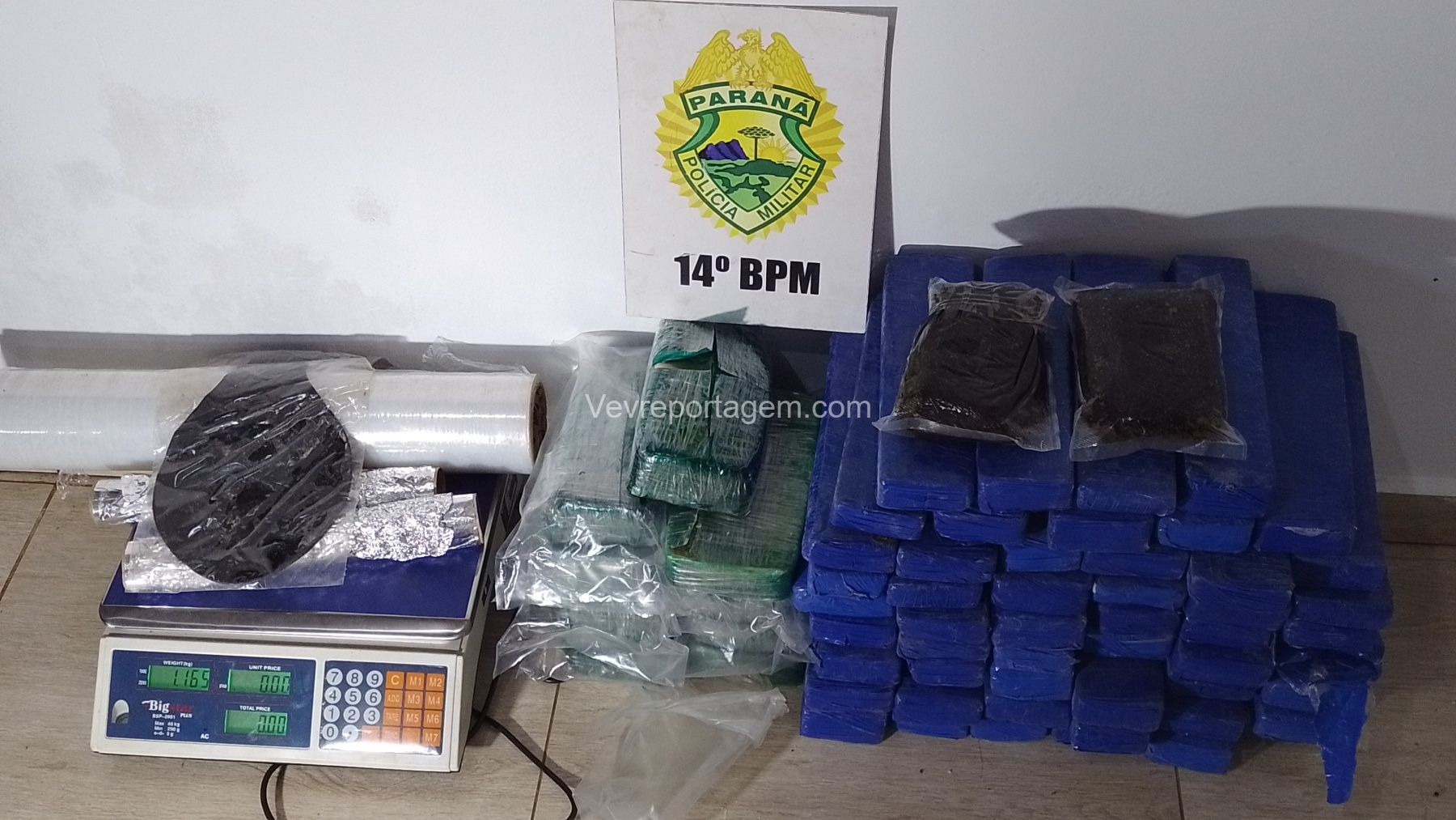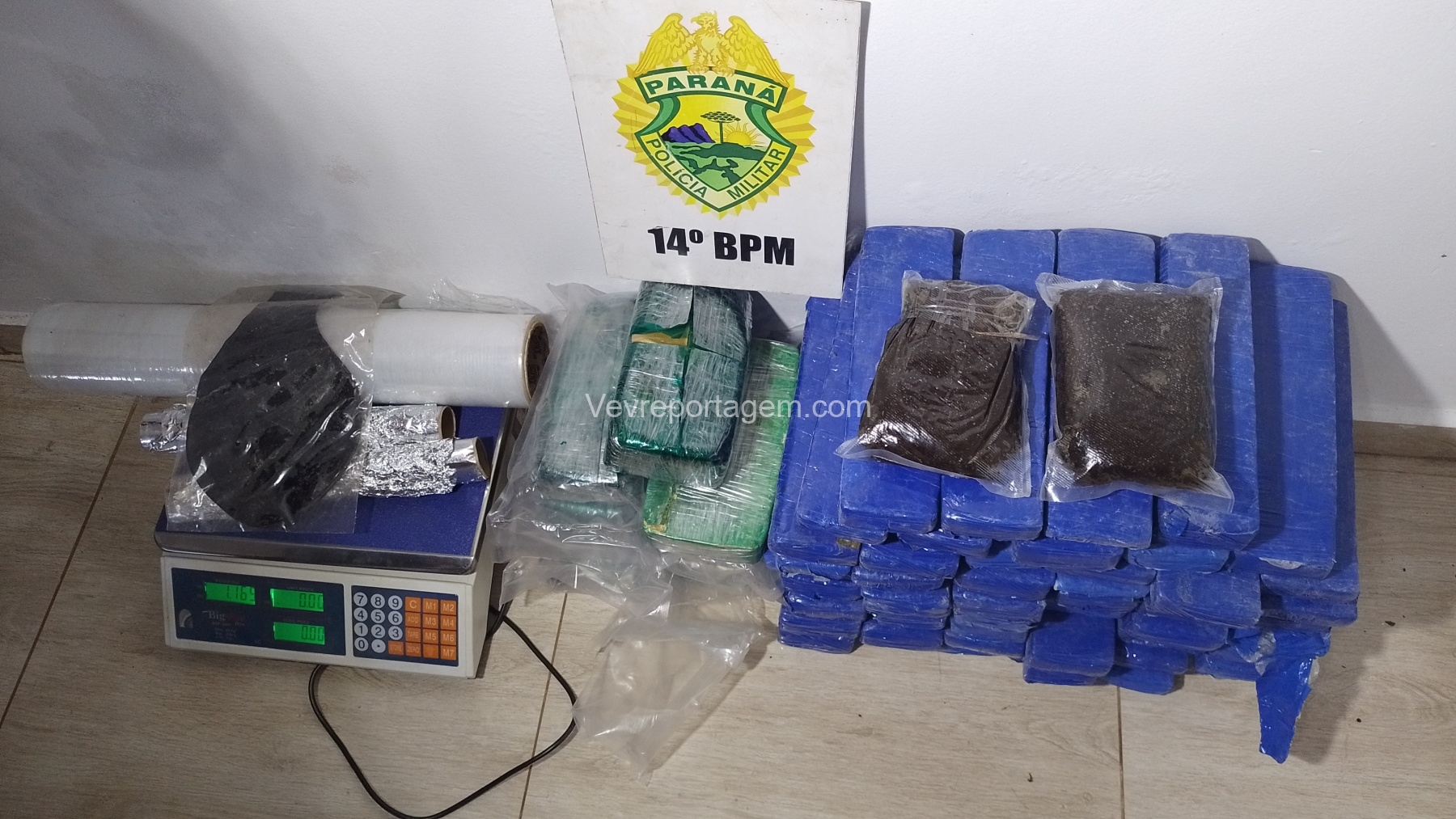 Ao chegarem ao local, os militares constataram que o portão da casa estava aberto. Durante a averiguação, foram localizados 10 quilos de crack, 30 quilos de maconha e 1 quilo de haxixe.