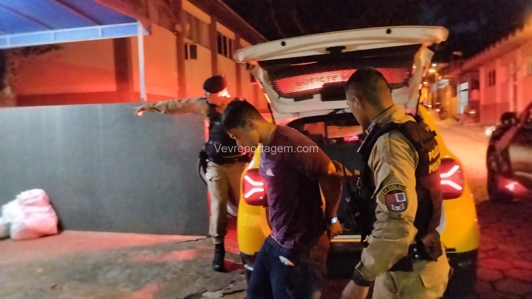 No início da noite deste sábado (4), policiais militares da RPA Sul realizavam patrulhamento pela Avenida Golfinho, nas proximidades do bairro Bubas, quando avistaram três indivíduos em frente a uma residência em atitude suspeita.