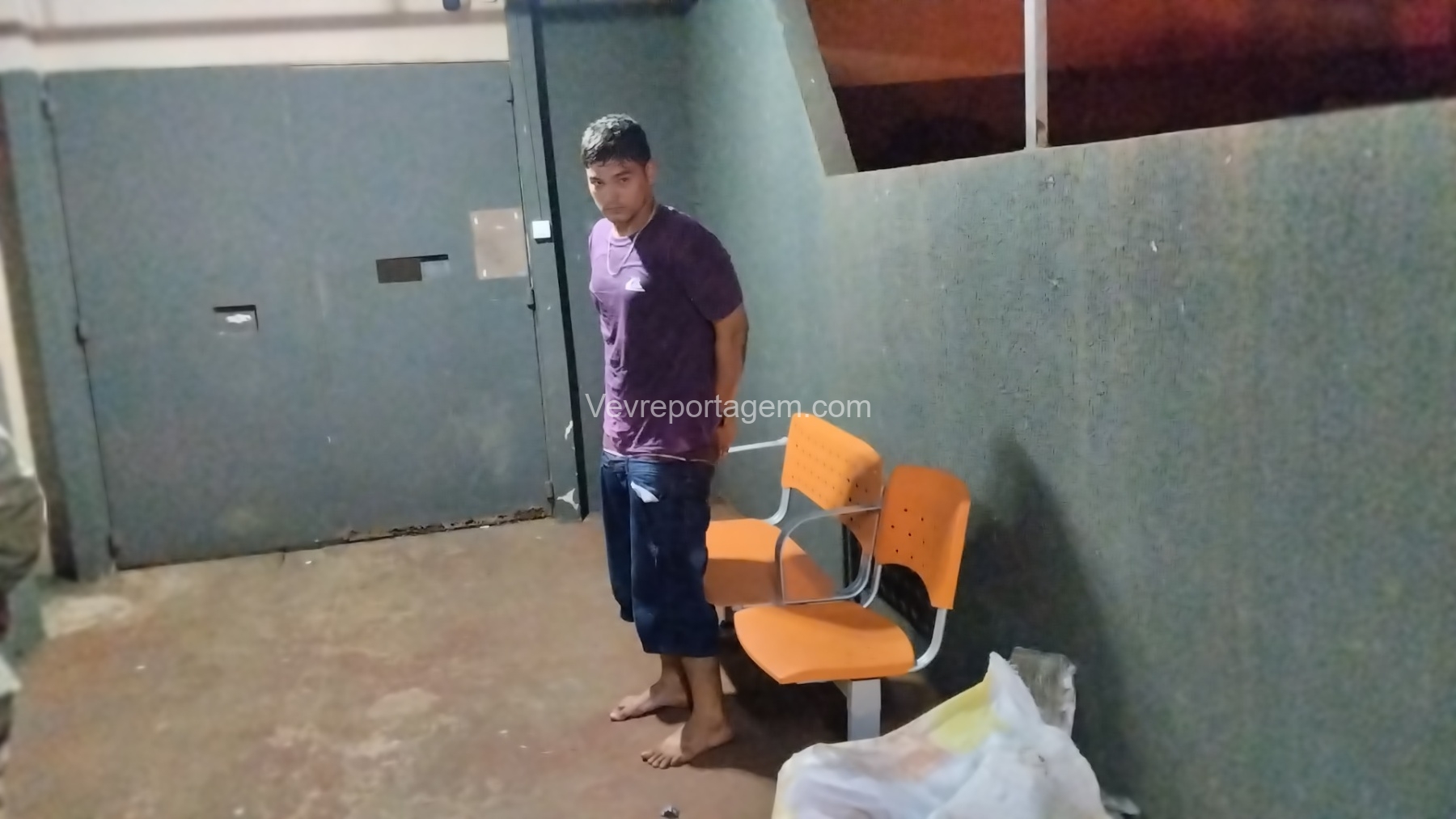 Ao perceberem a aproximação da viatura, os suspeitos fugiram para o interior do imóvel e pularam muros de residências vizinhas. Dois conseguiram escapar, porém um deles foi alcançado e detido pela equipe policial.