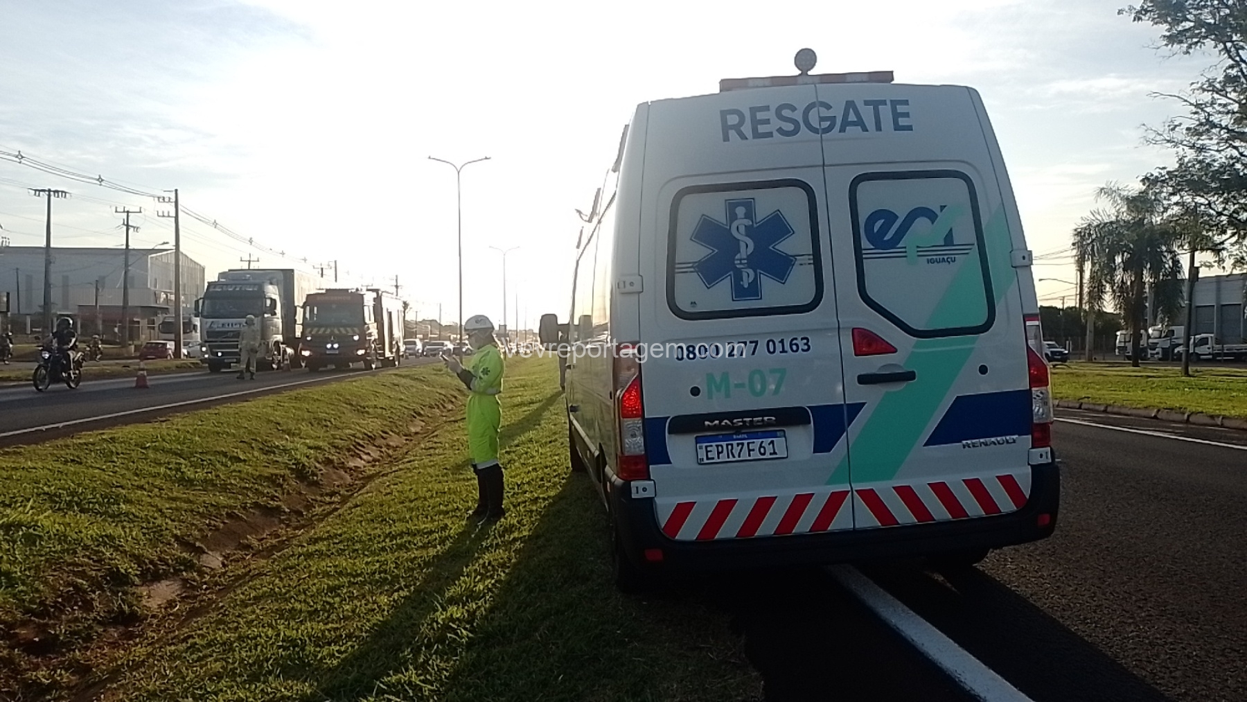 Na tarde desta quinta-feira, equipes de emergência foram acionadas para atender uma ocorrência de mal súbito na BR-277, nas proximidades do viaduto do bairro Três Lagoas, em frente à Só Diesel, em Foz do Iguaçu.