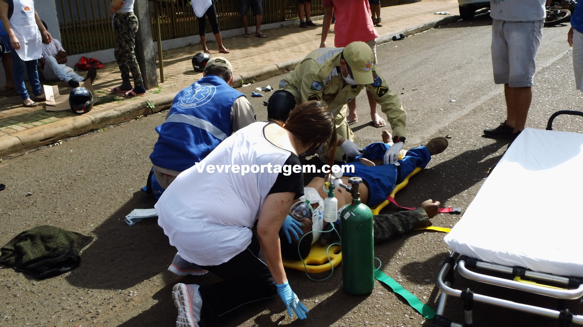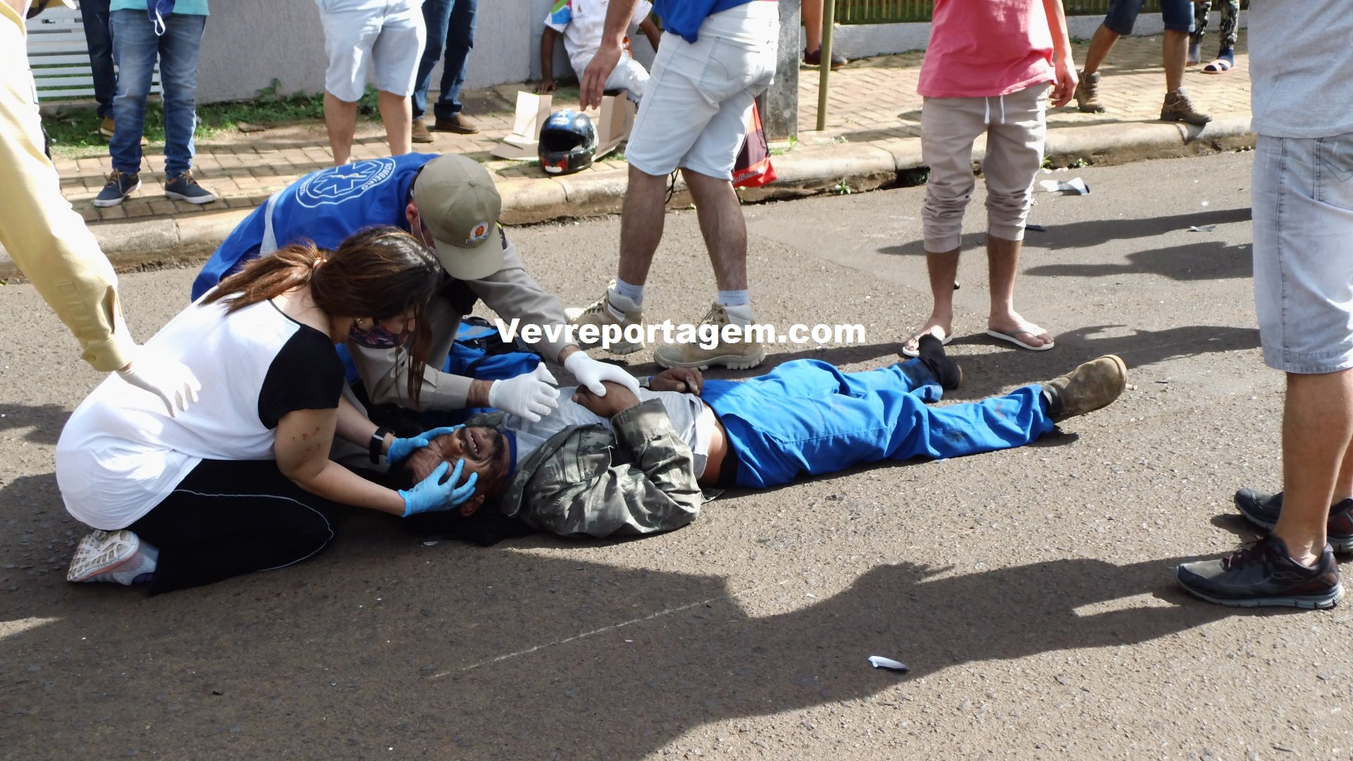 Na motocicleta se tratava de o padrasto e enteado que estavam dando trabalho após o almoço. O padrasto tem 48 anos de idade e o enteado que conduzia a motocicleta 36 anos de idade.