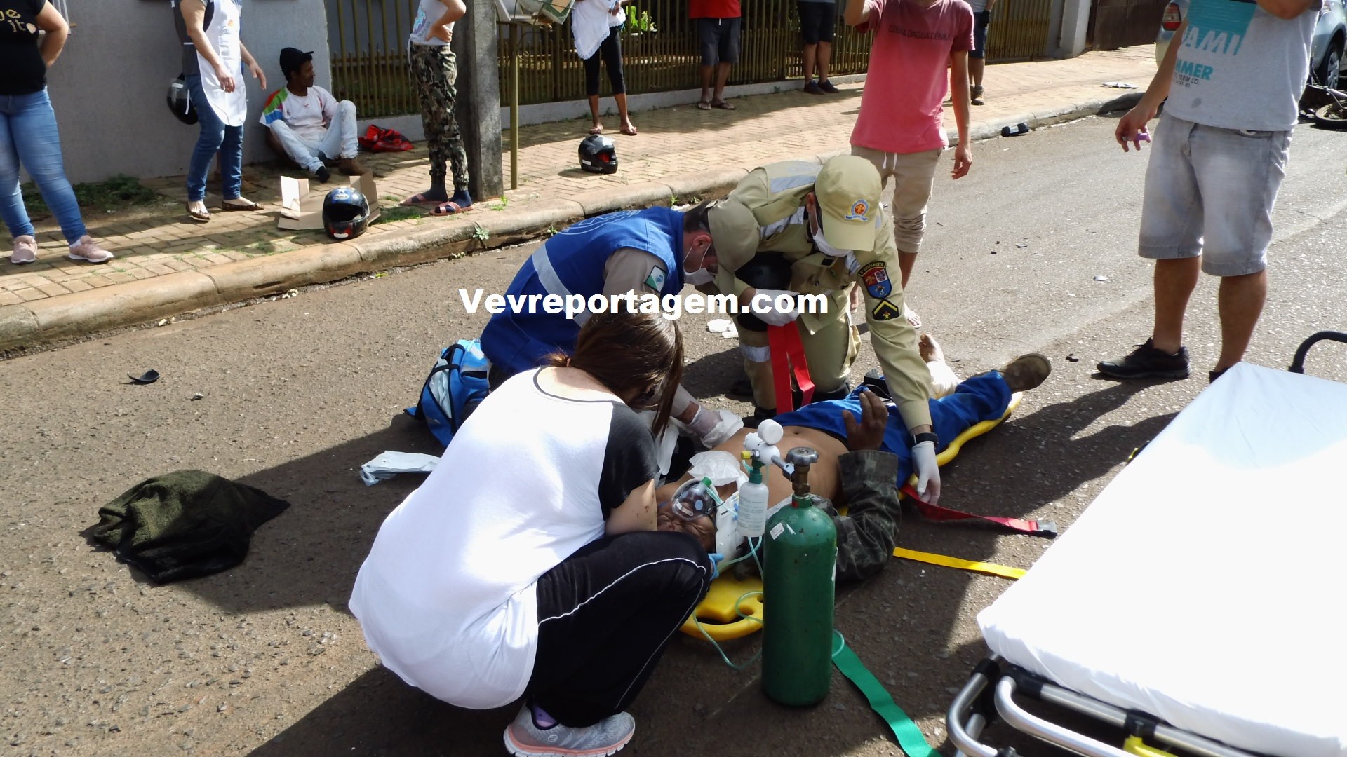 No local foi constatado a ocorrência, onde duas vítimas estavam em solo e uma delas apresentava fratura na perna esquerda e um leve traumatismo craniano, rapidamente o homem foi imobilizado colocado na maca encaminhado para o interior da ambulância para melhor ser avaliado pelo médico. A segunda vítima também se tratava de um homem, mas estava com ferimentos considerados leves, com escoriações e sentia muita dores nas costas, o mesmo também foi imobilizado e aguardou a chegada da segunda ambulância.