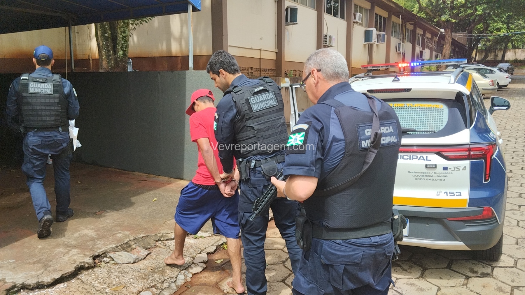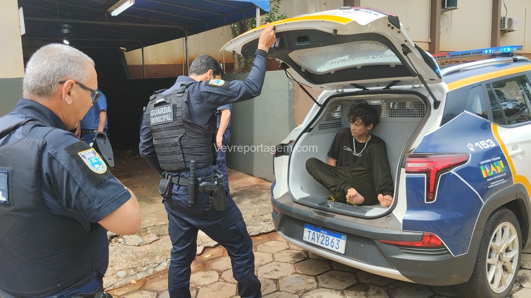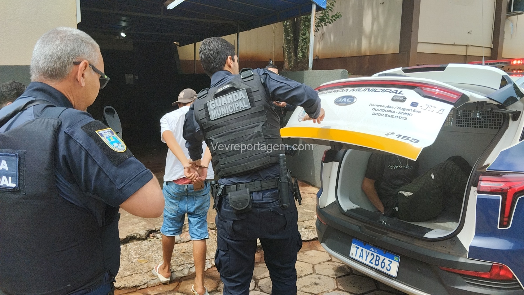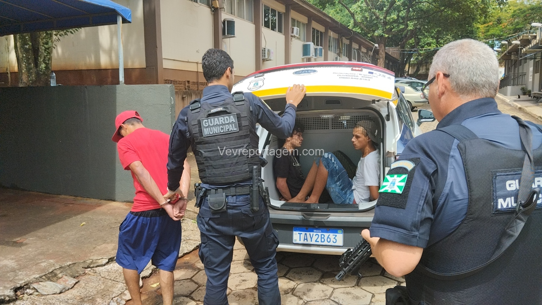 Após serem acionadas, equipes da Guarda Municipal, com apoio da Polícia Militar do 14º Batalhão (14º BPM), iniciaram buscas pela região. O veículo roubado foi localizado no bairro Jardim Almada, onde os três suspeitos, com idades entre 18 e 19 anos, foram abordados e detidos.