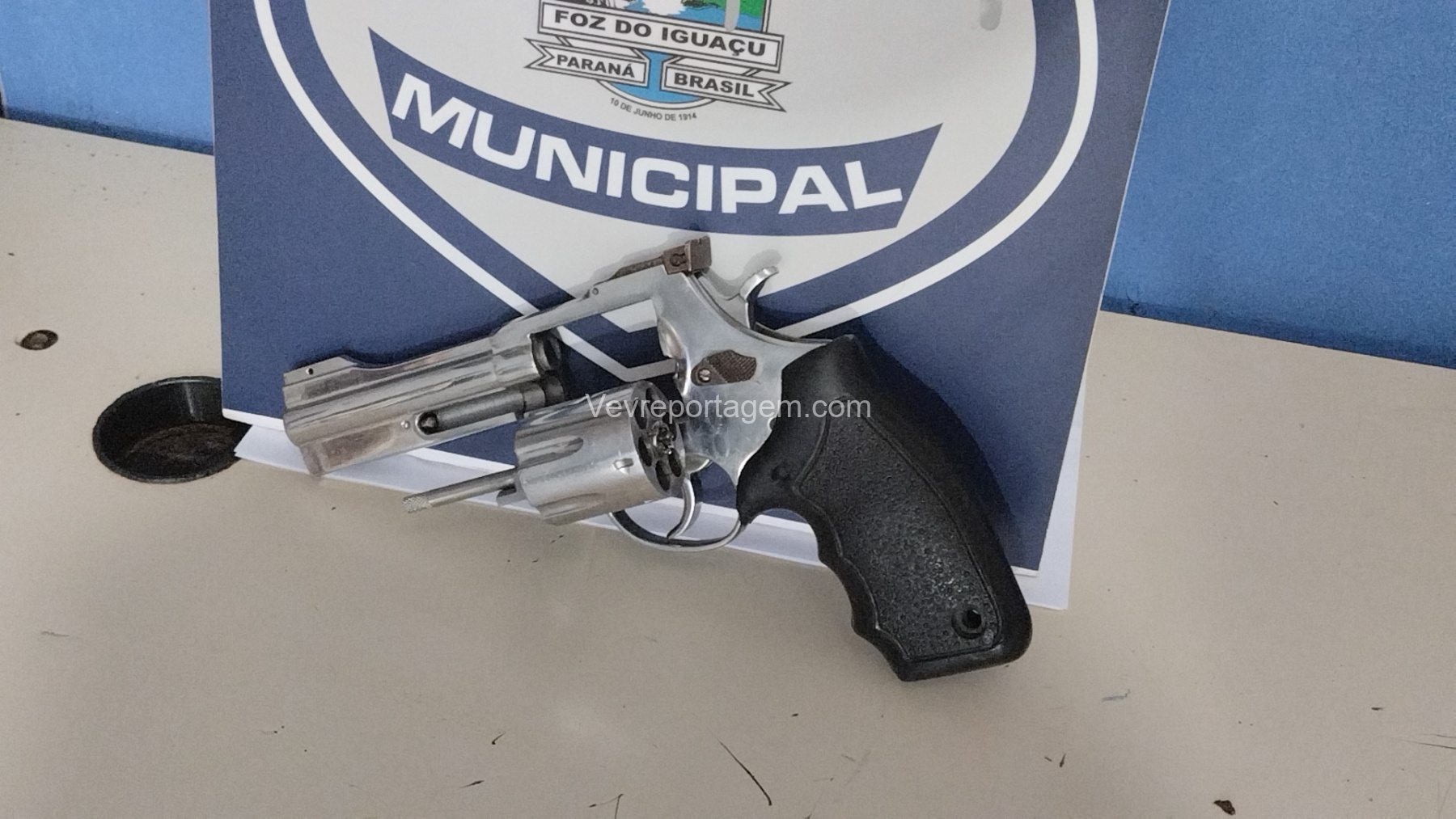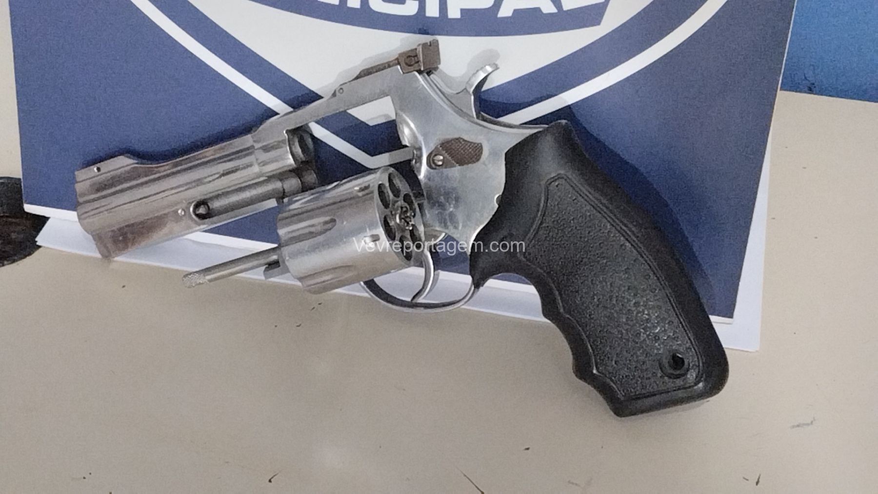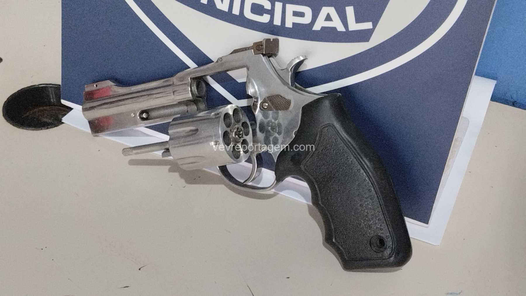 Durante revista no automóvel, os agentes localizaram um revólver calibre .38, desmuniciado e com a numeração suprimida.