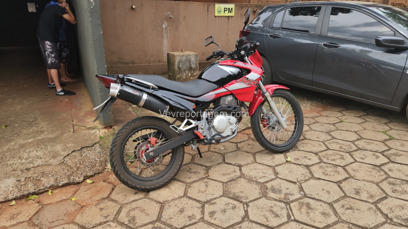 Durante o patrulhamento de rotina na Vila Brás, a equipe do Choque percebeu algo suspeito: a motocicleta estacionada em frente a uma residência com a placa erguida. A cena levantou desconfiança e motivou a abordagem.