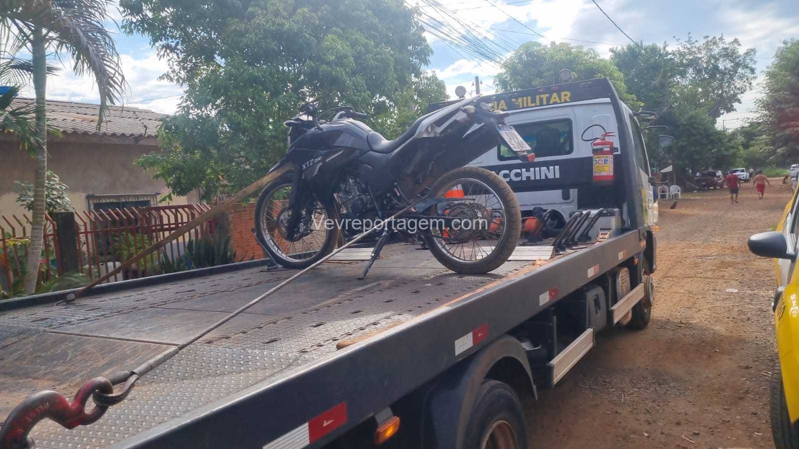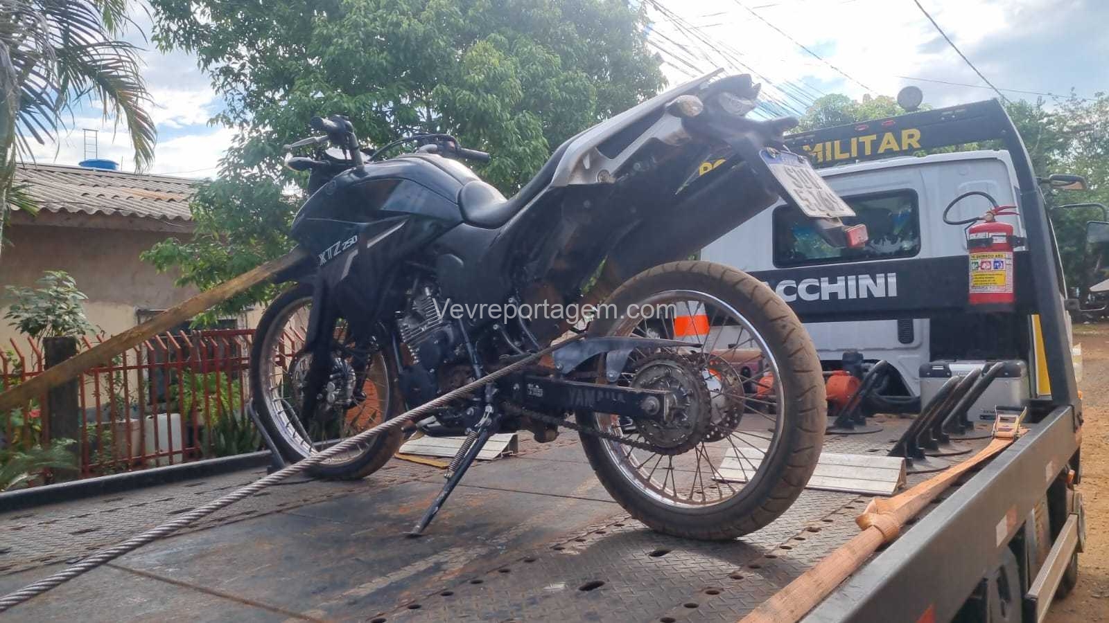 A motocicleta utilizada pelos dois indivíduos foi apreendida e encaminhada para a delegacia da Polícia Civil.