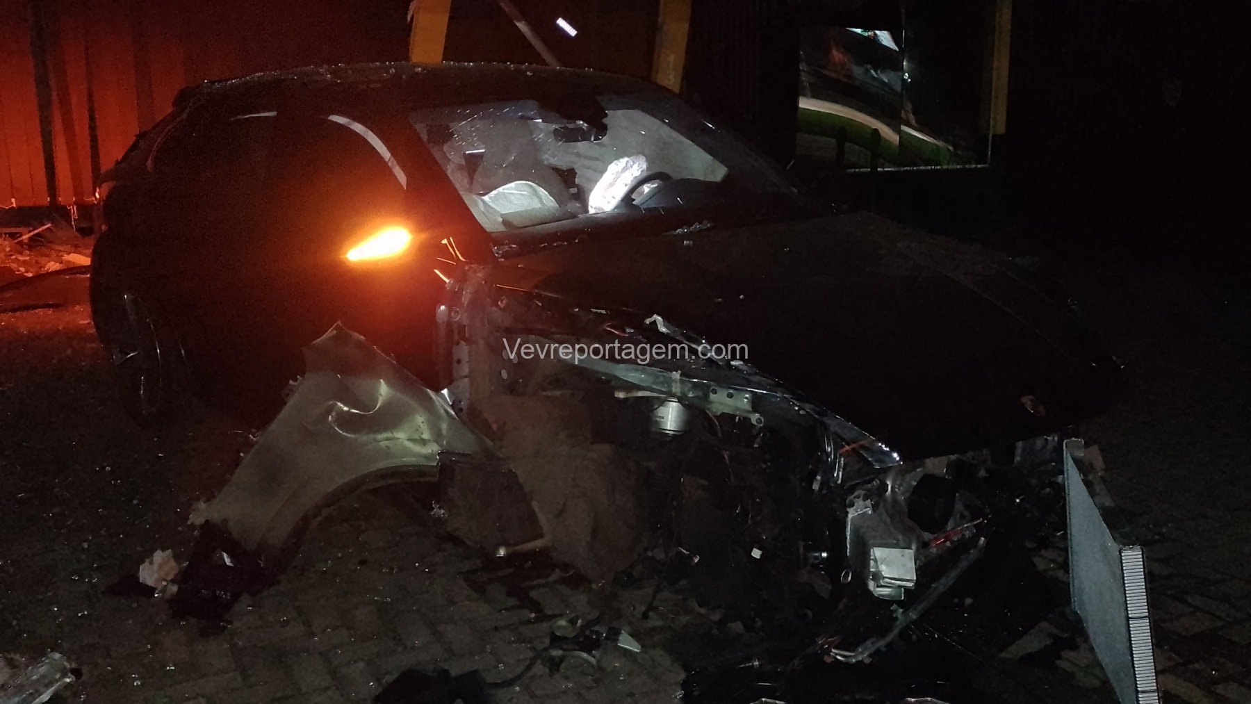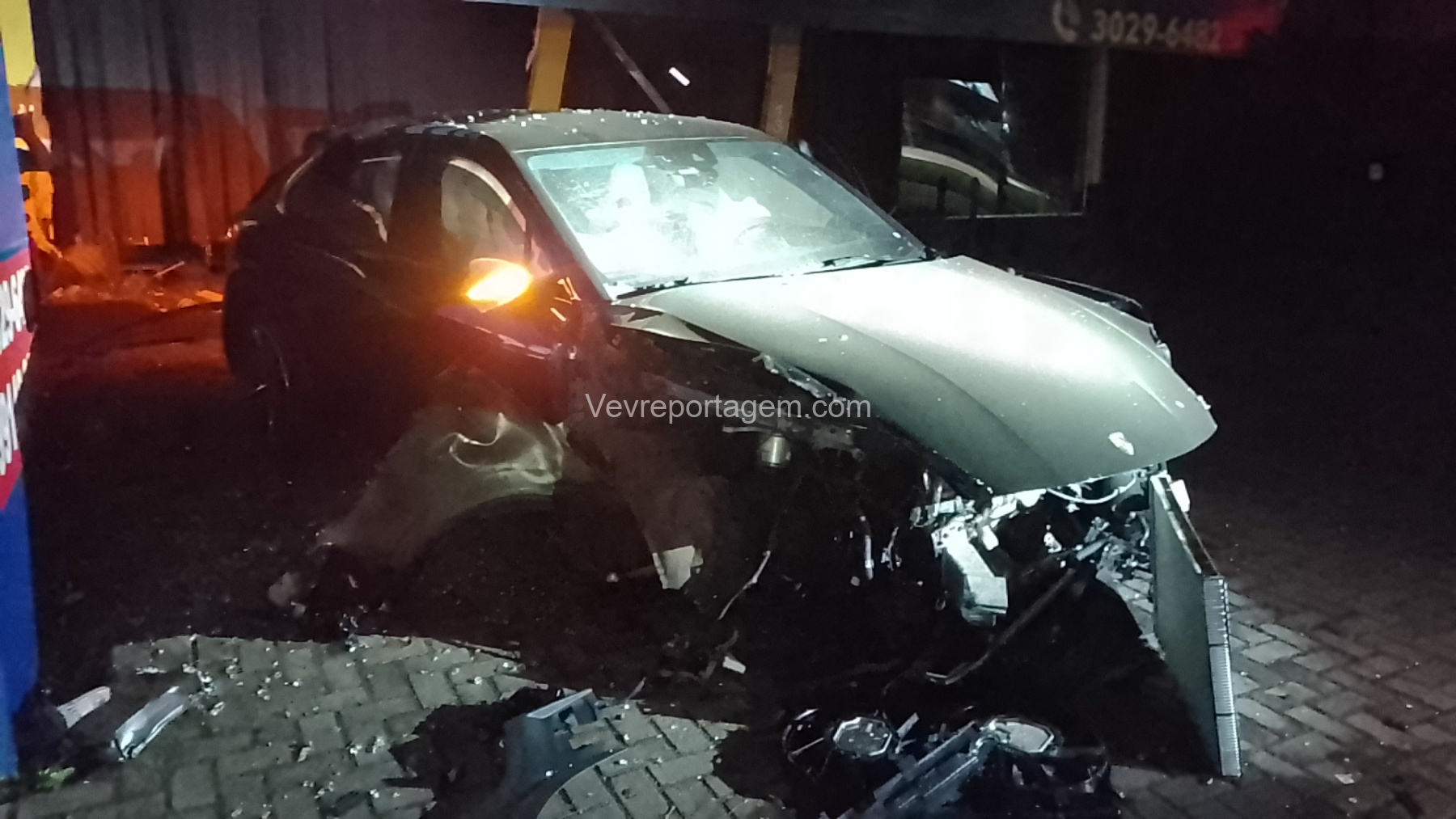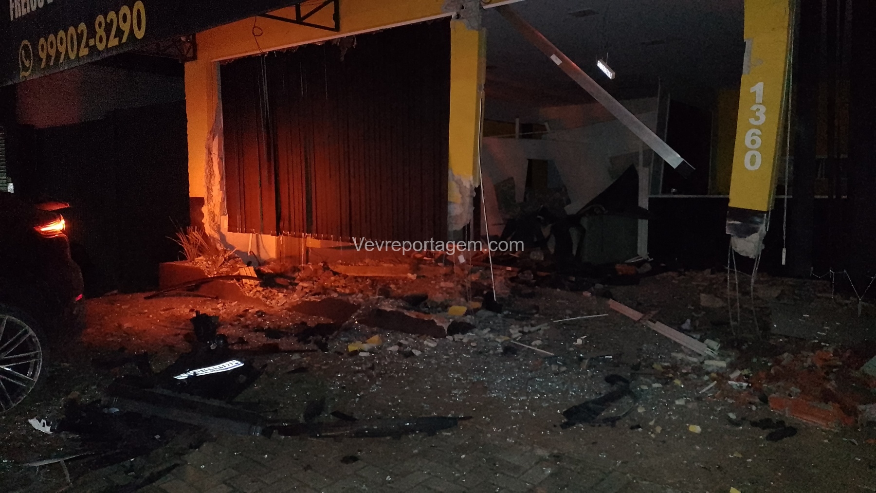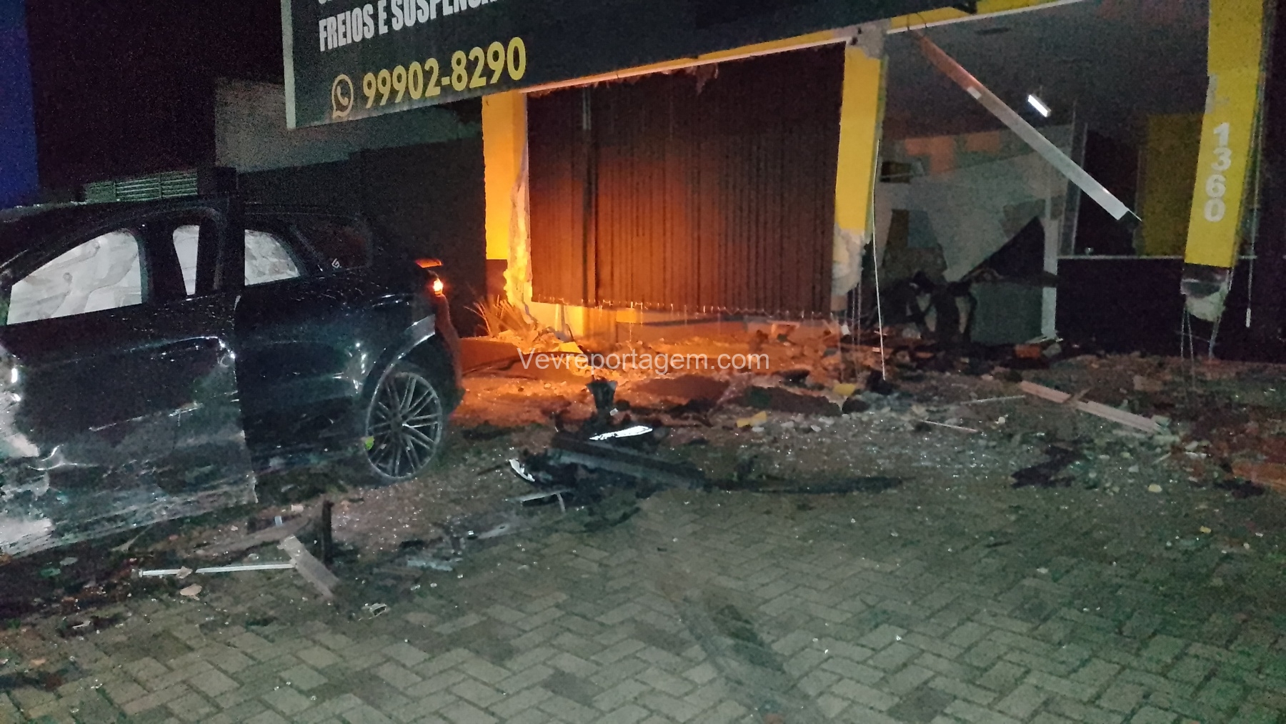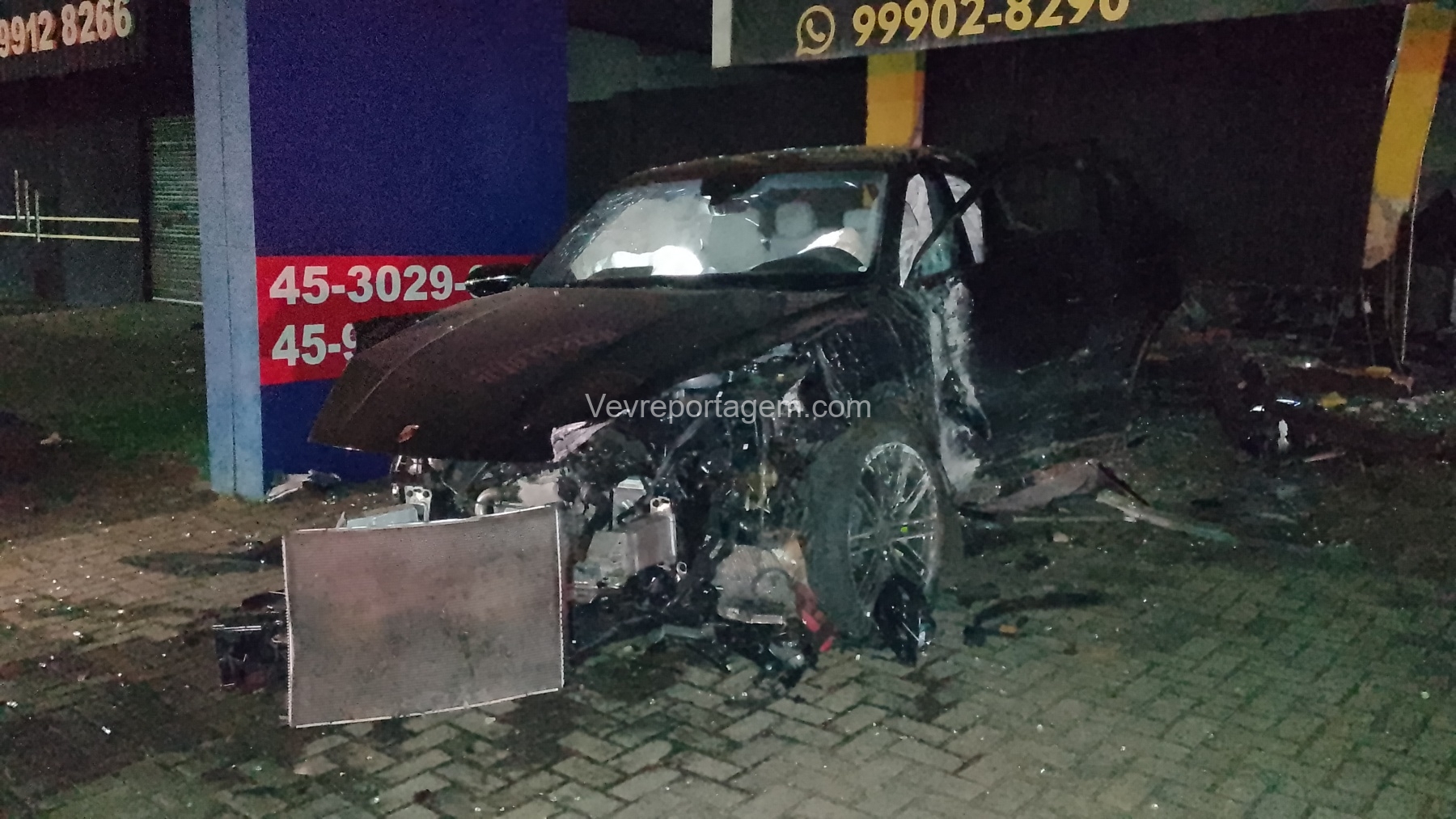 De acordo com as informações repassadas às equipes, um veículo de luxo, modelo Porsche, colidiu violentamente contra um poste de energia elétrica e, em seguida, contra a fachada de um estabelecimento comercial. Ao chegarem ao local, os policiais e os guardas municipais constataram o acidente, porém não havia feridos. O condutor do veículo havia abandonado o local antes da chegada das autoridades.
