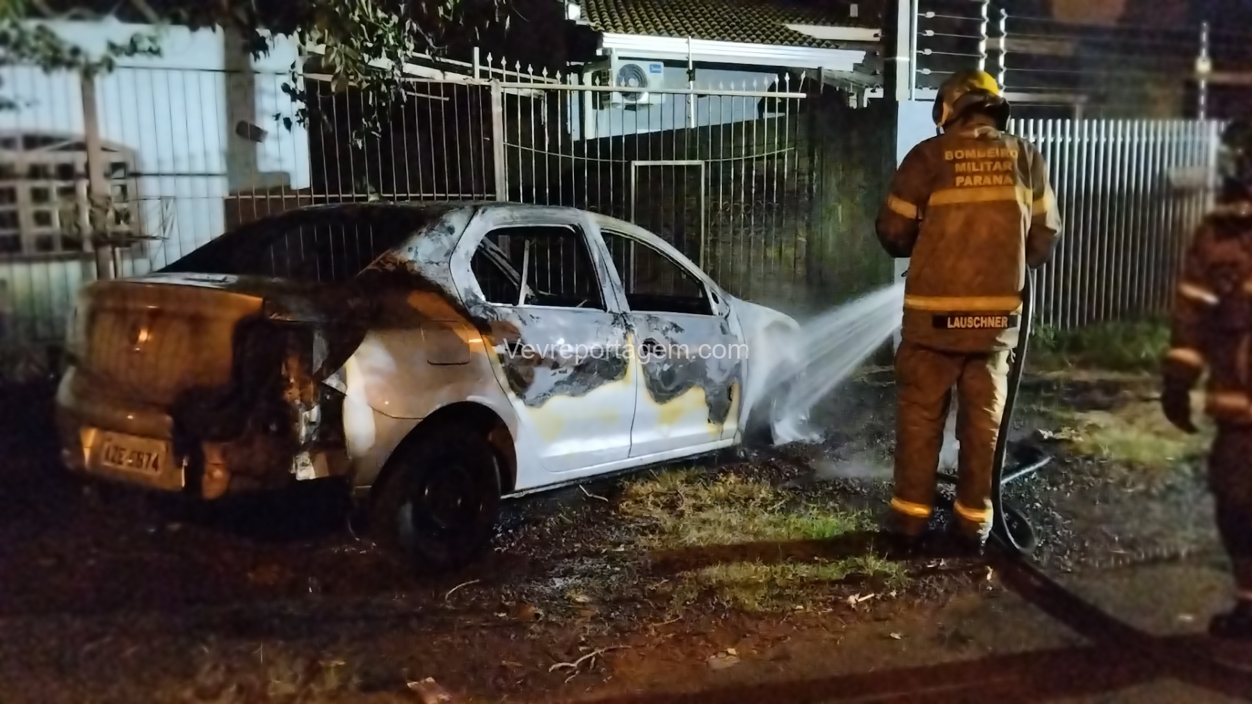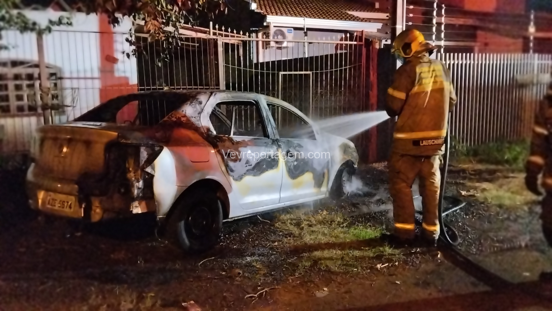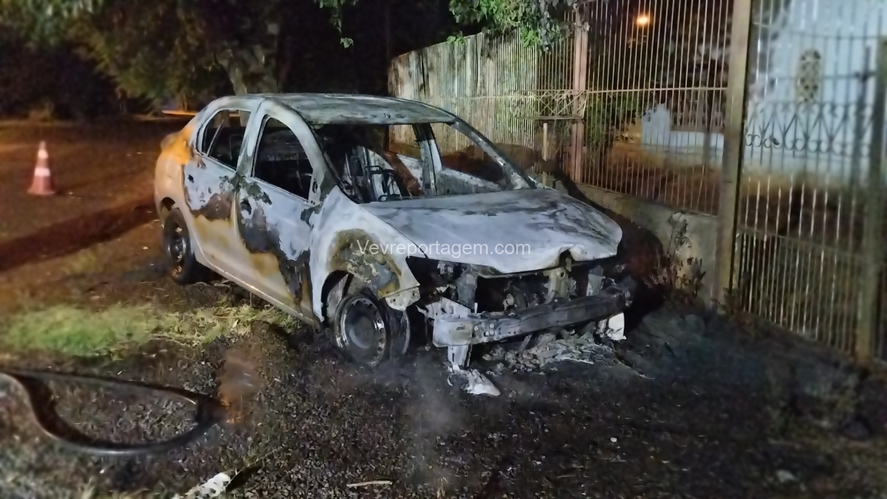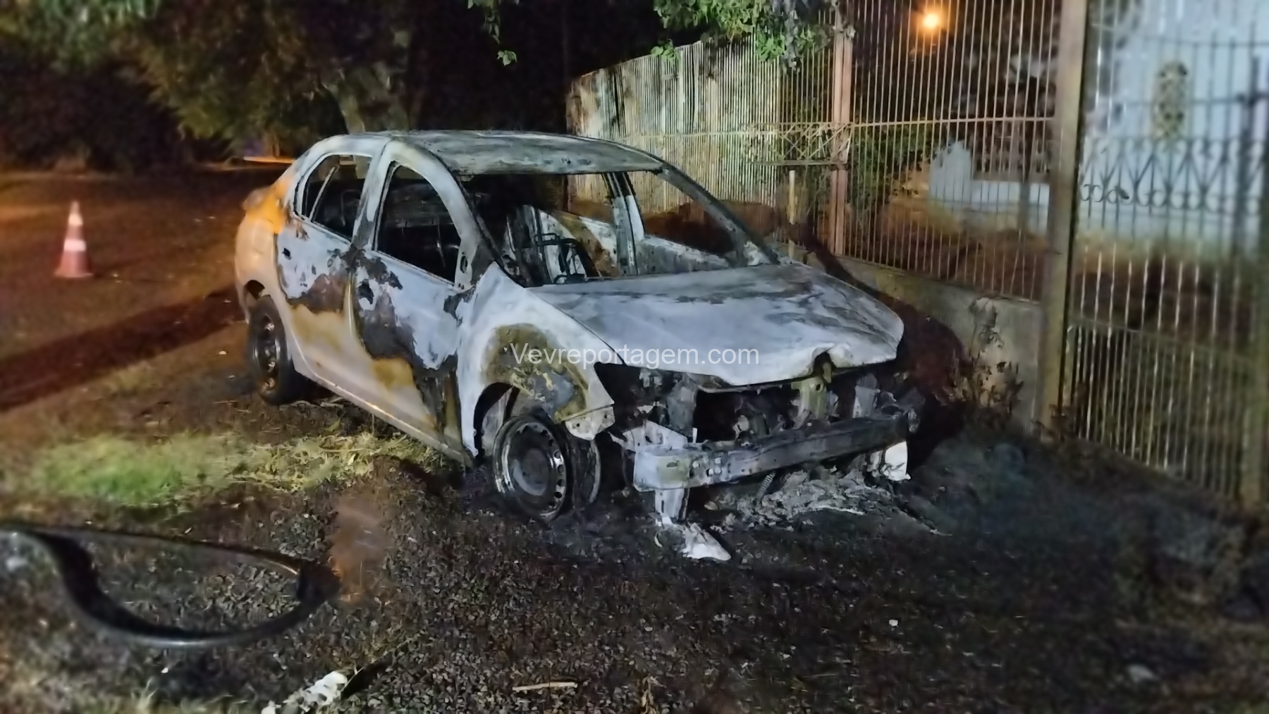O veículo estava estacionado em frente a uma residência desocupada. Segundo informações repassadas por vizinhos, o carro já havia pegado fogo no período da manhã de sábado, quando as chamas foram controladas, deixando o automóvel parcialmente destruído.