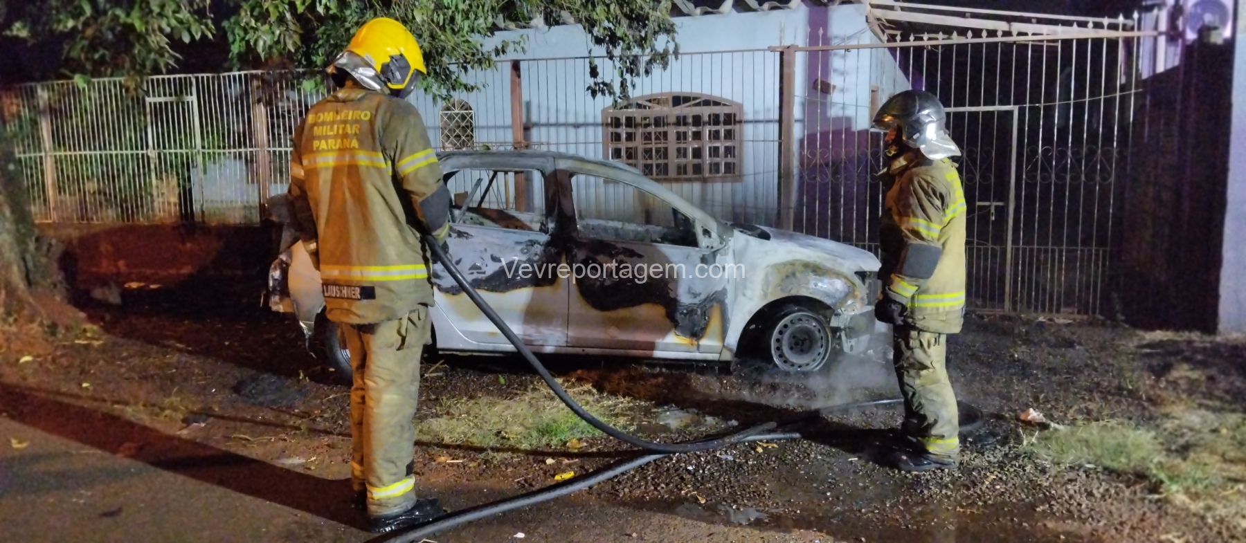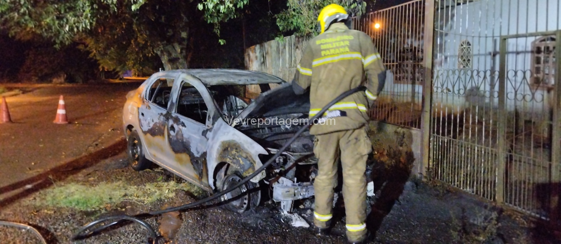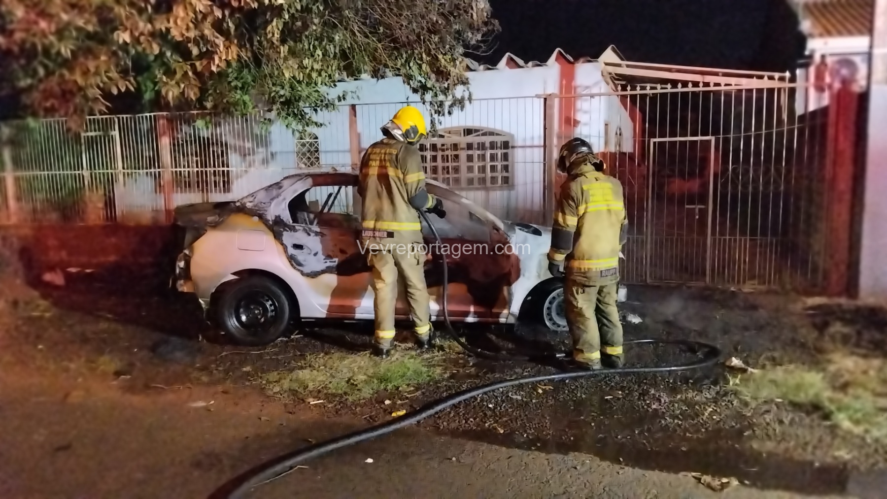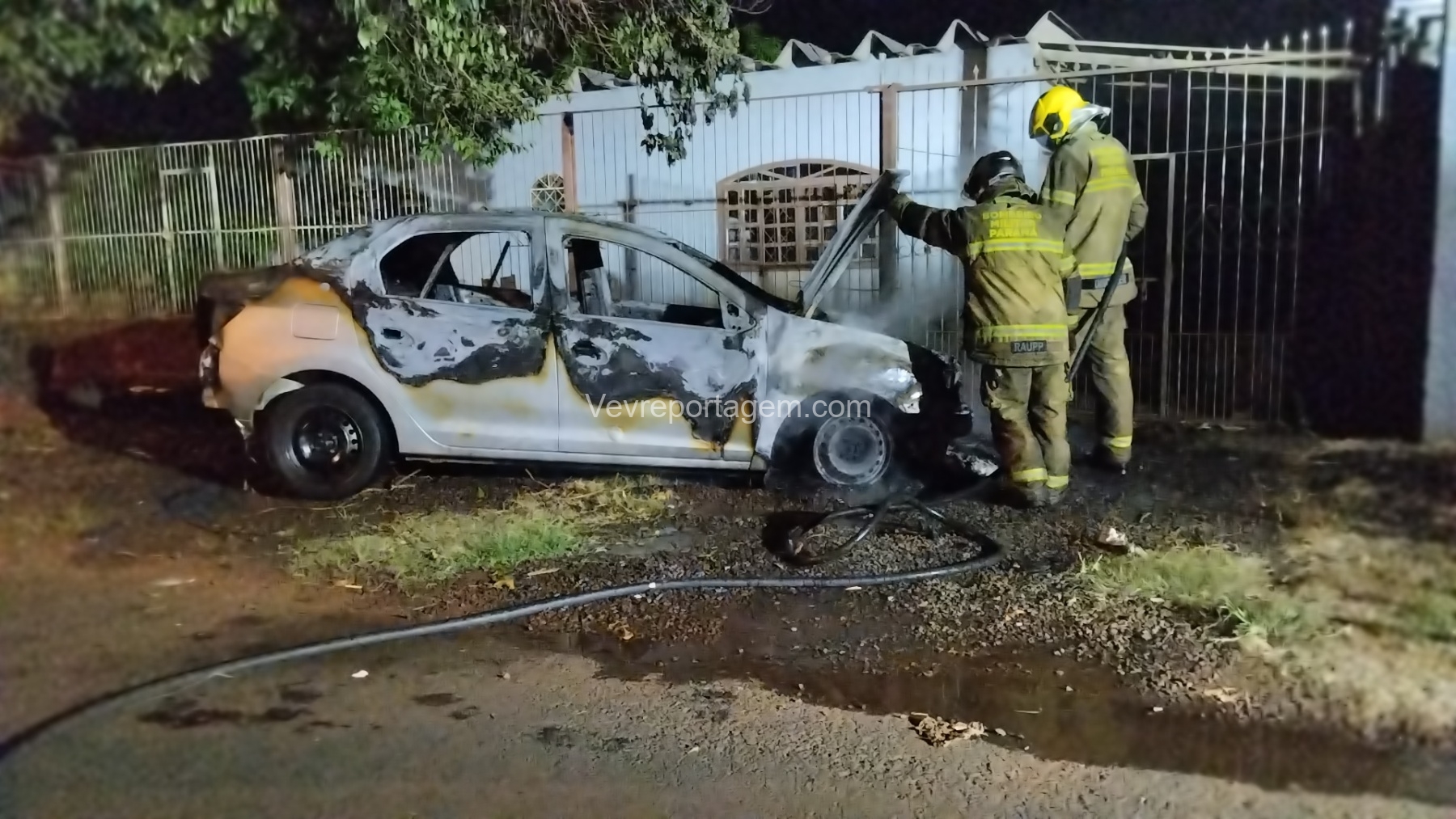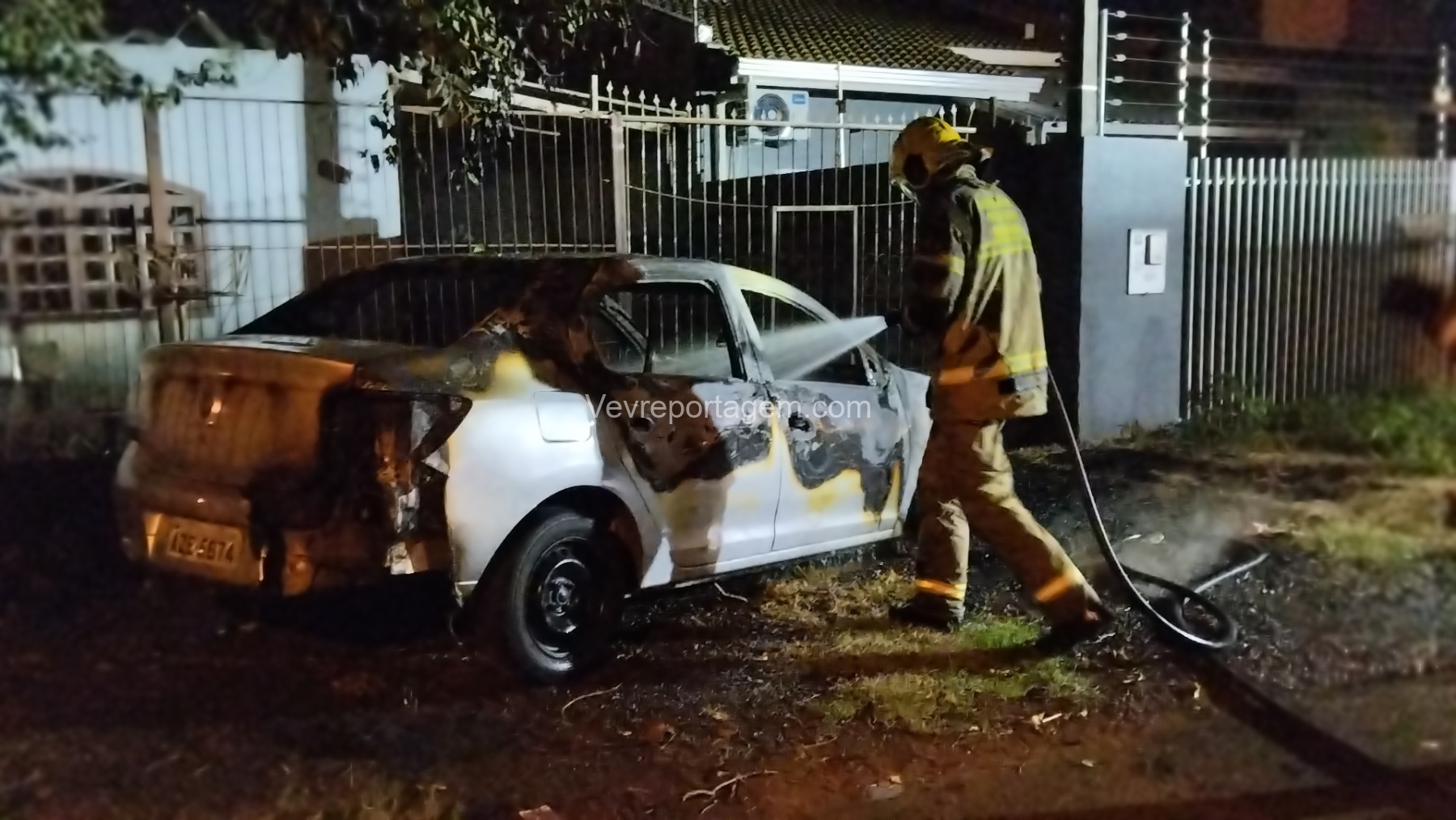 O veículo estava estacionado em frente a uma residência desocupada. Segundo informações repassadas por vizinhos, o carro já havia pegado fogo no período da manhã de sábado, quando as chamas foram controladas, deixando o automóvel parcialmente destruído.