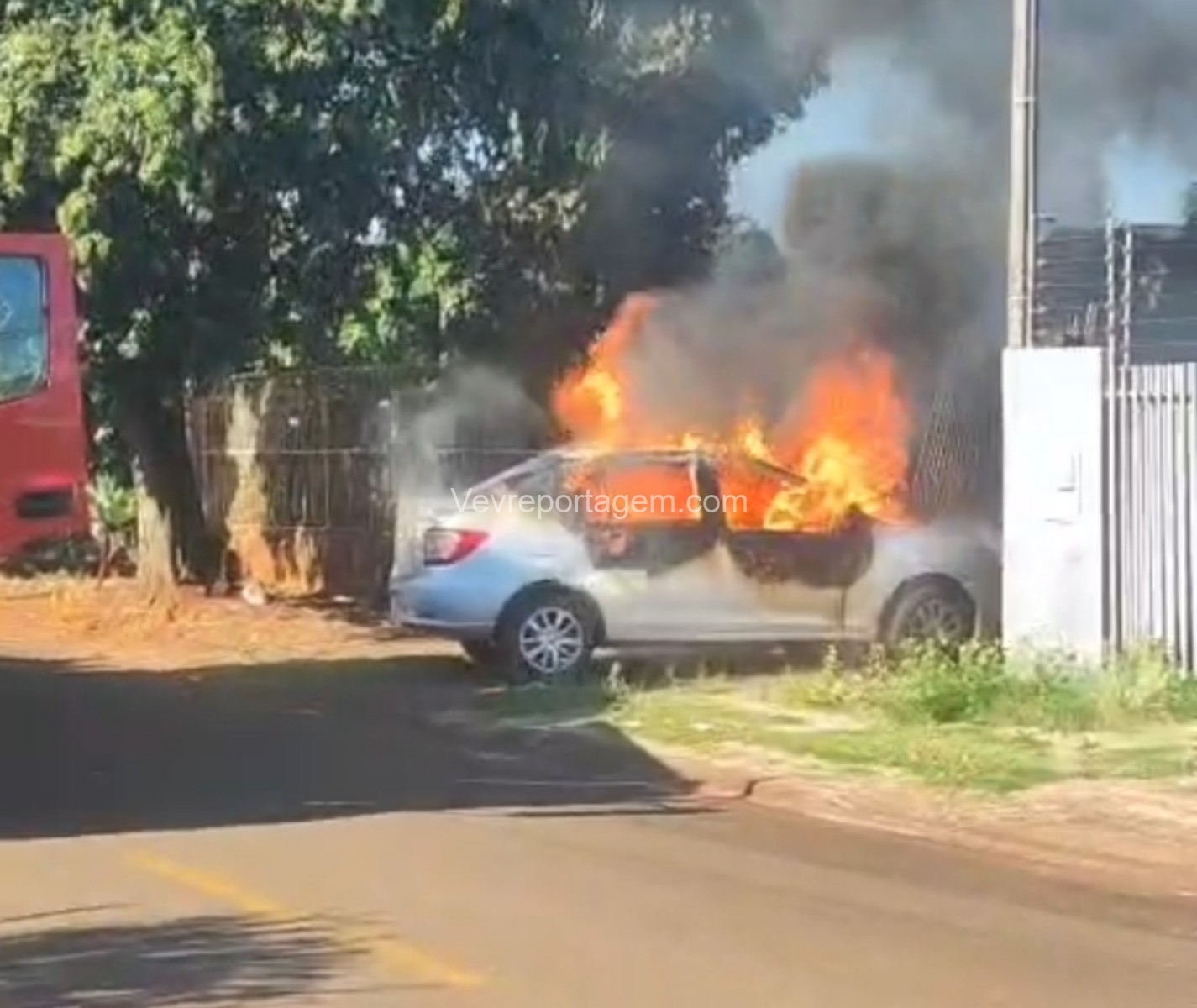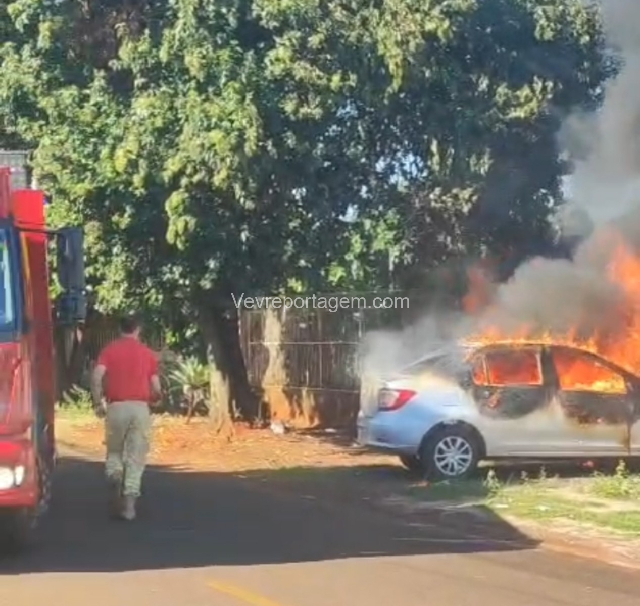 Após o controle do incêndio, o veículo permaneceu no local. Até o momento, não há informações sobre o proprietário do automóvel.