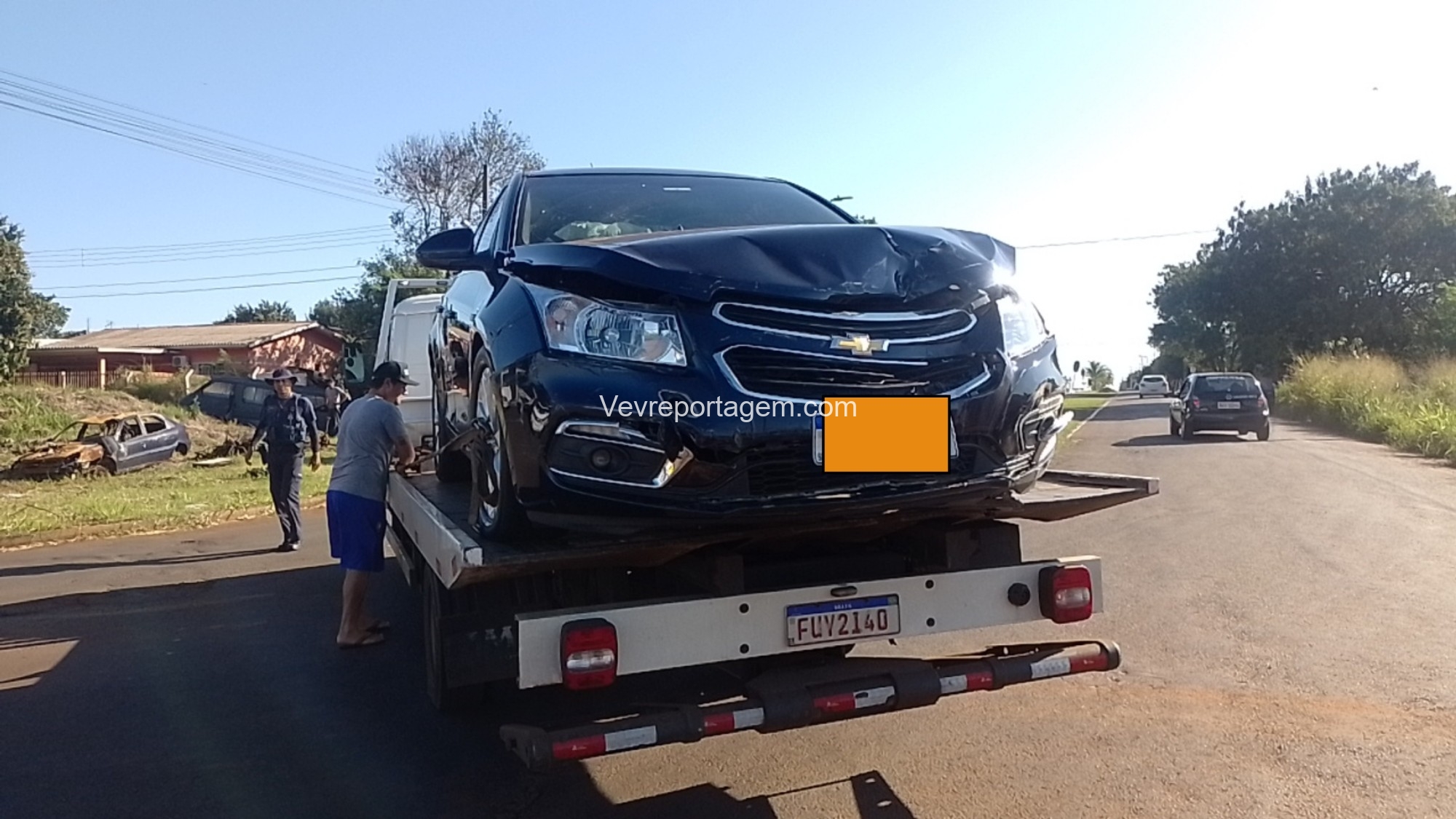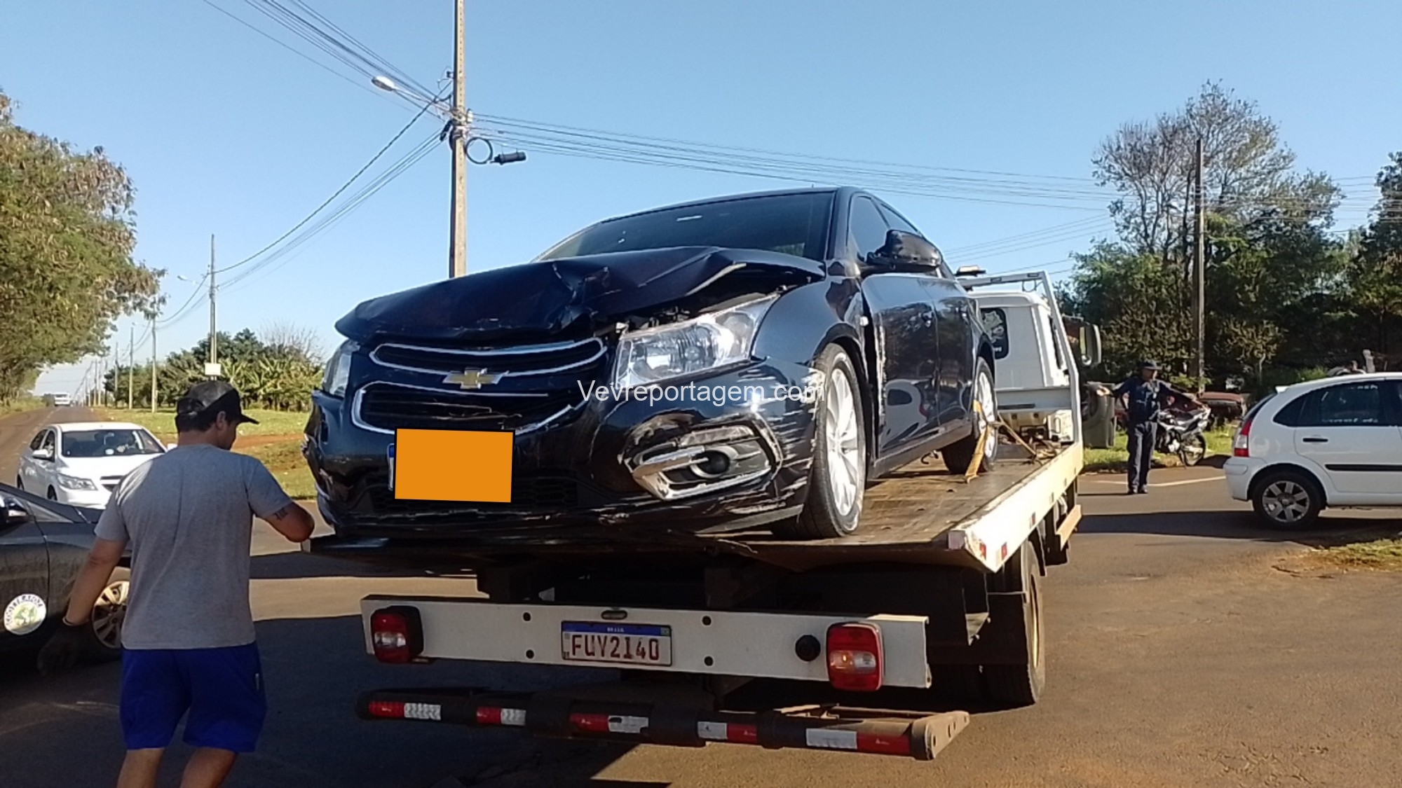 Em seguida equipes da Guarda Municipal e Polícia Militar chegaram no local, realizaram buscas, porém, o indivíduo não foi localizado. Diante dos fatos foi acionado o Guincho da Guarda Municipal e da Polícia Militar.