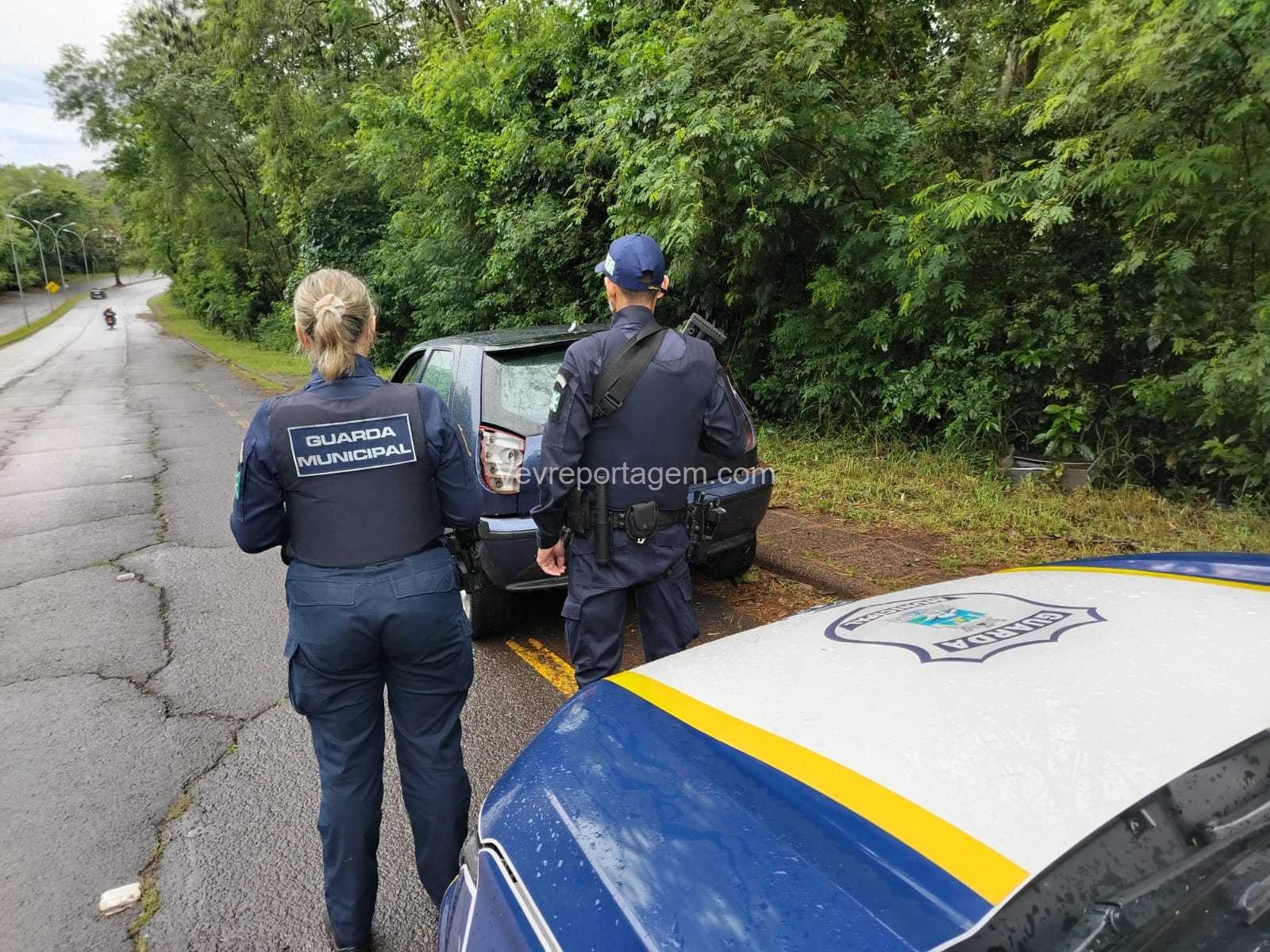 Após consulta no sistema policial, foi confirmado que o carro, placas AIF6C02, de Santa Terezinha de Itaipu, possuía registro de roubo. O automóvel estava bastante danificado, sem luzes de sinalização e completamente abandonado.
