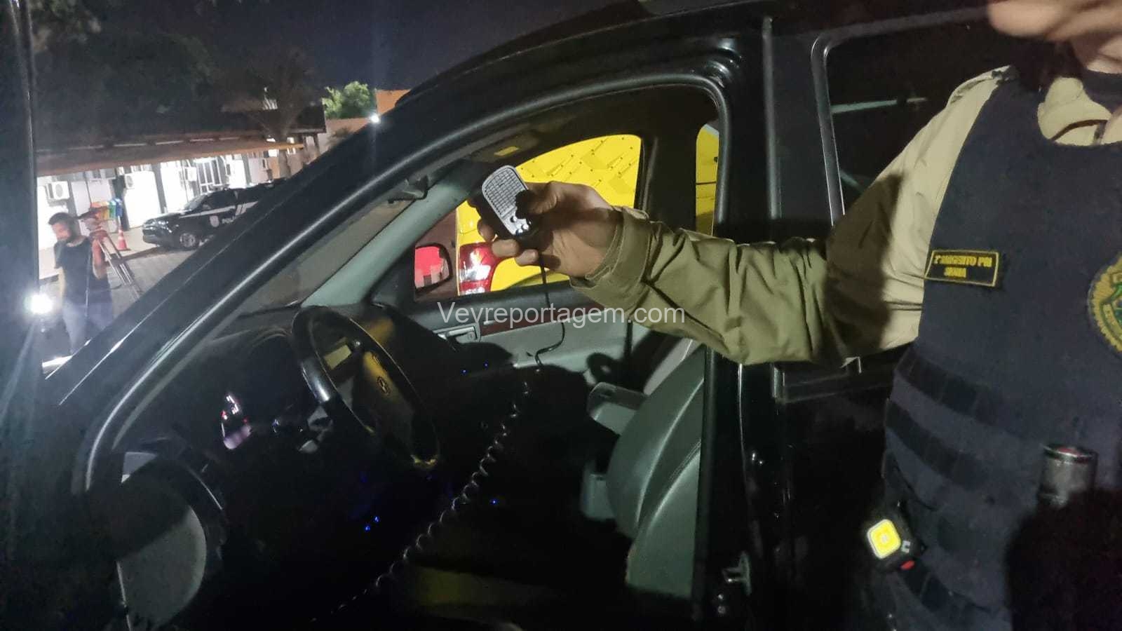 Diante das informações, os policiais se deslocaram até o local e lograram êxito em localizar o veículo citado, o qual estava equipado com giroflex e sirene, possivelmente usados para simular uma viatura policial durante os crimes.